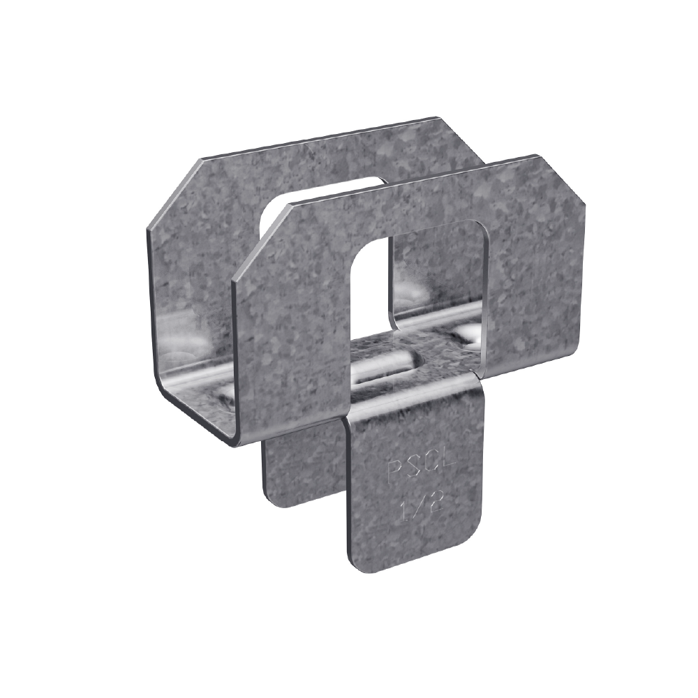 The PSCL is designed to brace unsupported sheathing edges when sheathing meets edge to edge without a rafter for support. This light sheathing clip provides a 1/8″ gap to address shrinkage and expansion of roof sheathing. Inserted over the edges of adjacent plywood panels, the PSCL reduces deflection and keeps panels even to maintain a level plane on the structure.
