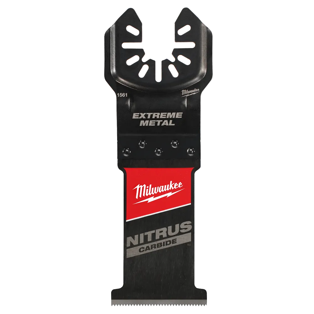 The MILWAUKEE® NITRUS CARBIDE™ Extreme Metal Universal Fit OPEN-LOK™ Oscillating Multi-Tool Blades provide the ultimate cutting experience, delivering the fastest cutting and longest life on the jobsite. The extreme metal NITRUS CARBIDE™ multi-tool blade delivers up to 2X more cuts than Carbide Teeth blades – capable of hundreds of cuts in deck screws. The extreme metal blade is ideal for cutting metal fasteners such as bolts, screws, nails, and threaded rods. The new Universal Fit OPEN-LOK™ Anchor is reinforced for added strength and control and allows for quick blade changes across 100+ multi-tools. Not compatible with Starlock tools. MILWAUKEE® oscillating multi-tool blades are designed and made in the USA with global materials. Available in 1, 3, or 5 packs.