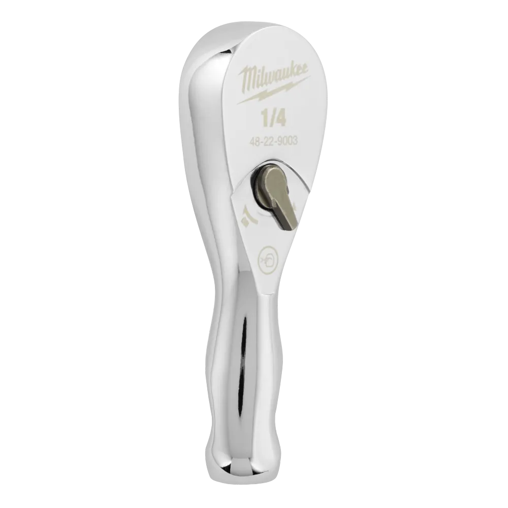 The MILWAUKEE® 1/4 in. Drive Ratchet offers 4° of arc swing, allowing access to work in tighter spaces. A slim-profile head and flush directional lever combined with the stubby handle length offers increased accessibility. The all-chrome finish provides the ratchet with easy-cleaning. This ratchet is backed by Milwaukee’s Mechanics Hand Tools Lifetime Guarantee.