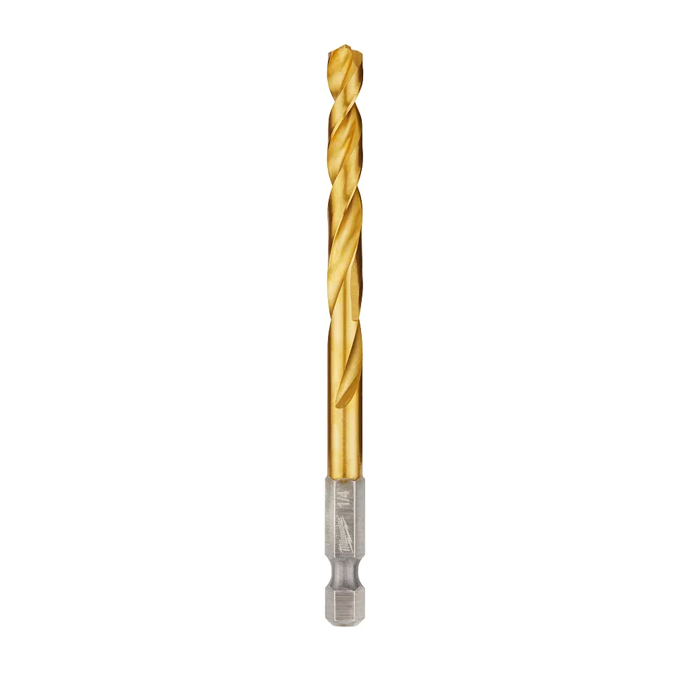 The MILWAUKEE® 1/4″ SHOCKWAVE™ RED HELIX™ Titanium Drill Bit is engineered for extreme durability and long life. The QUAD EDGE™ tip delivers a precision start and four cutting edges to create smaller chips for faster removal and less heat leading to longer bit life. Designed with a Variable Helix ™ that includes an aggressive 35° helical angle, which ends at 15°, this titanium drill bit with RED HELIX™ provide Rapid Chip Removal™ limiting heat buildup to Stay Sharper Longer™. The bit also features an internal ENHANCED TAPERED WEB that greatly increases the strength of the bit, reducing premature breakage. Ideal for various applications including but not limited to wood, plastics, and metals, Milwaukee Red Helix Titanium Drill Bits provide up to 5X life vs. black oxide drill bits.