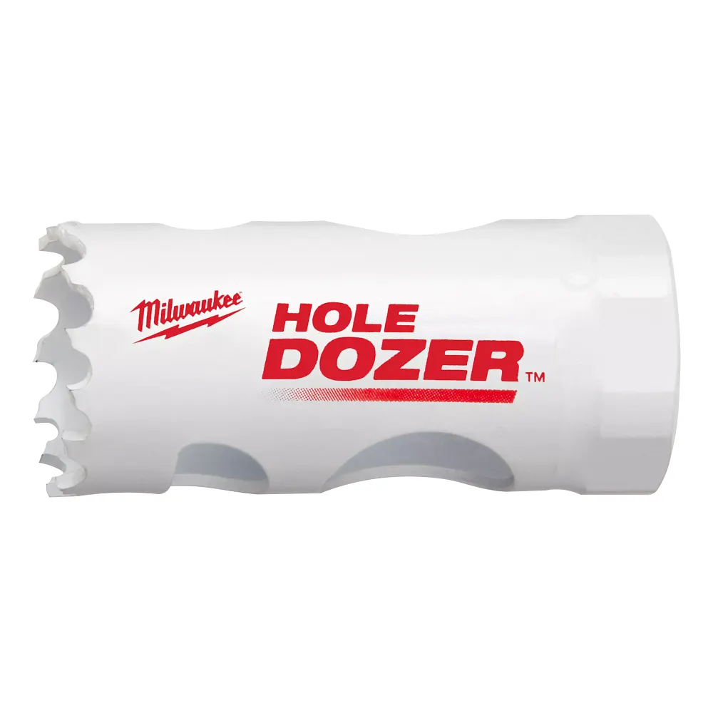 The MILWAUKEE® 1″ HOLE DOZER™ Bi-Metal Hole Saws new 3.5 TPI tooth design offers the longest life in metal applications. These HOLE DOZER™ Bi-Metal Hole Saws feature the industry’s only Lifetime Tooth Break Warranty and take on all general purpose applications, making them the most durable hole saws. Our ALL-ACCESS SLOTS solve the frustration of plug removal for more productivity with less downtime between holes. The new slot design also offers increased pilot visibility for accurate placement and faster chip ejection keeping the cut cool. HOLE DOZER™ Thermoset Coating allows for faster cutting and is optimized for cordless tools, delivering 25% more holes per charge. Milwaukee HOLE DOZER™ Bi-Metal hole saws are proudly made in the USA.