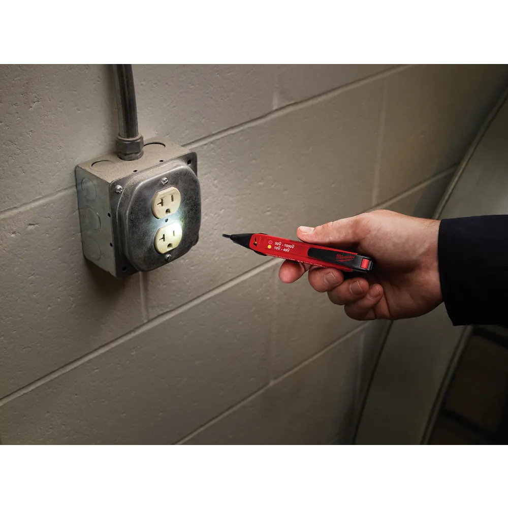The Milwaukee 10-1000V dual range voltage detector is the first non-contact voltage detector with the ability to light up, detect, and differentiate automatically. The expanded sensitivity range of 10-49V offers the ability to detect voltage in common systems that would normally go undetected when using a standard voltage detector. These systems include: LED lighting, fire detection & suppression systems, HVAC controls, and security & access controls, along with many others. The 10-1000V dual range voltage detector not only detects, but also differentiates 10-49V from the standard voltage range of 50 to 1000 V. it does so by using a uniquely colored LED indicators and audible tones, delivering the clearest indication of these two voltage ranges. A built-in LED work light allows for increased visibility in low-lit areas, and automatic shut-off after 5 minutes helps preserve battery life. The 10-1000V dual range voltage detector is a best-in-class voltage detection solution for any electrician, HVAC technician, or facilities maintenance technician.