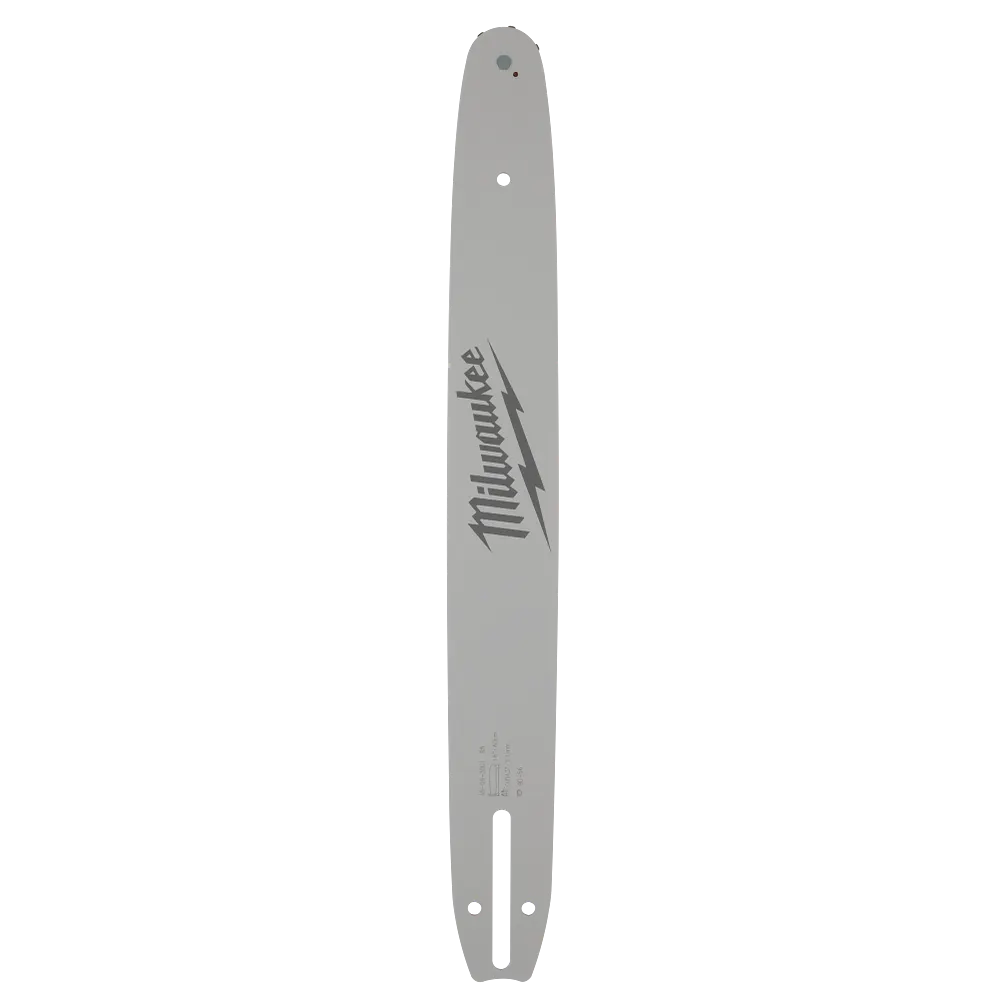 The MILWAUKEE® 16″ 3/8″ LOW PROFILE™ Pitch, .043″ Gauge Guide Bar is lightweight and easy to maneuver for controlled cuts. The narrow kerf bar offers more cuts per charge versus standard kerf bars to help maximize battery efficiency. This bar is recommended for use with the M18 FUEL™ 16″ Chainsaw (2727-20) and 16″ 3/8″ LOW PROFILE™ Pitch, .043″ Gauge Saw Chain (49-16-2715) and fits chainsaws with an A041 tail mount & narrow kerf chains of the same pitch, gauge, length, and drive links.