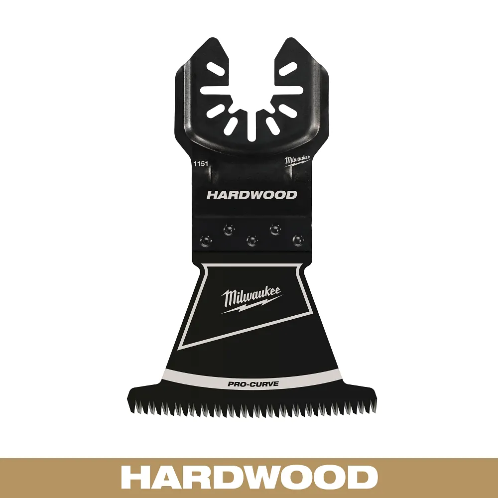 The MILWAUKEE® OPEN-LOK™ 2-1/2″ HCS Japanese Tooth PRO-CURVE™ Hardwood Oscillating Multi-Tool Blades are made from premium high carbon steel and feature precision triple-ground Japanese teeth for up to 2X faster cuts than the previous generation of high carbon steel blades. The Japanese Tooth hardwood blades have a PRO-CURVE™ cutting edge for greater control and accuracy while cutting. The combination of Japanese Teeth and PRO-CURVE™ cutting edge make this blade the optimal solution for precise cuts with a smooth finish in hardwood, wood, PVC, drywall, and other soft materials. These blades feature a reinforced Universal Fit OPEN-LOK™ anchor for better strength & control and allow for quick blade changes across 100+ multi-tools. Not compatible with Starlock tools. MILWAUKEE® oscillating multi-tool blades are designed and made in the USA with global materials.
