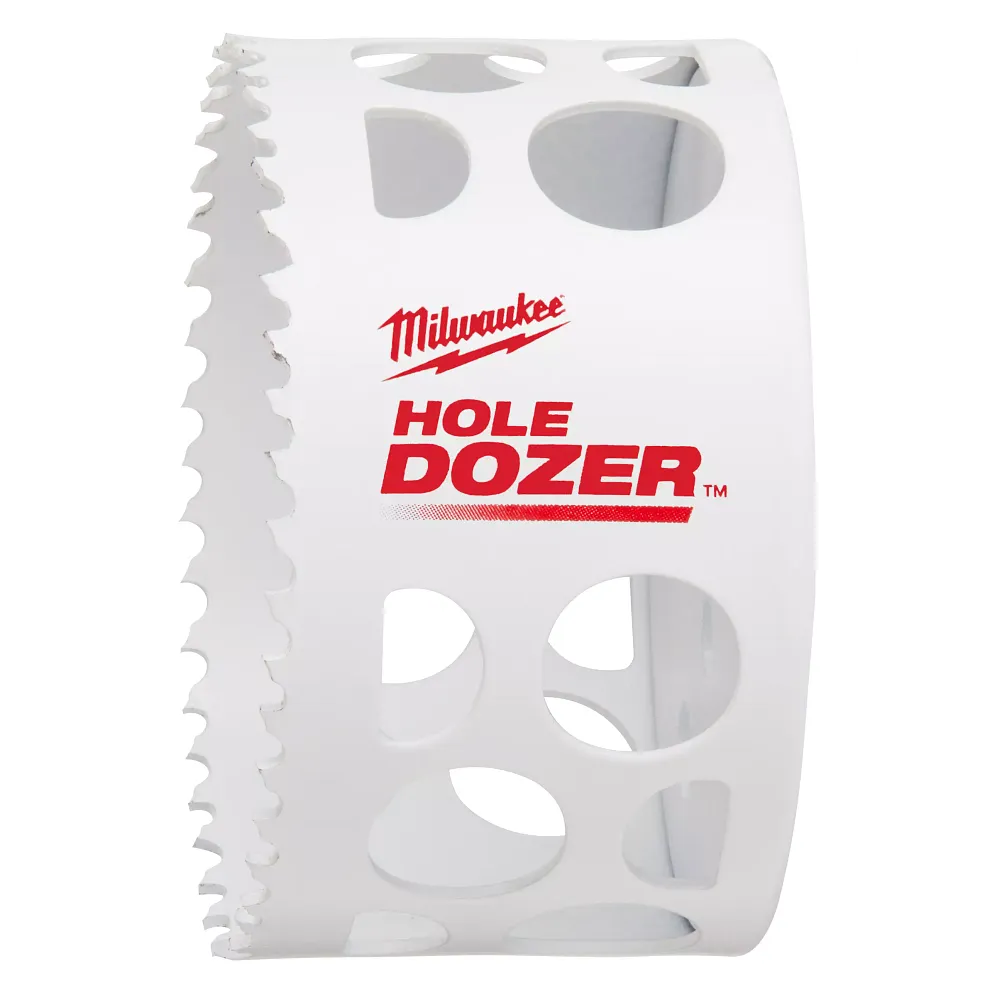 The MILWAUKEE® 3-1/4″ HOLE DOZER™ Bi-Metal Hole Saws new 3.5 TPI tooth design offers the longest life in metal applications. These HOLE DOZER™ Bi-Metal Hole Saws feature the industry’s only Lifetime Tooth Break Warranty and take on all general purpose applications, making them the most durable hole saws. Our ALL-ACCESS SLOTS solve the frustration of plug removal for more productivity with less downtime between holes. The new slot design also offers increased pilot visibility for accurate placement and faster chip ejection keeping the cut cool. HOLE DOZER™ Thermoset Coating allows for faster cutting and is optimized for cordless tools, delivering 25% more holes per charge. Milwaukee HOLE DOZER™ Bi-Metal hole saws are proudly made in the USA.