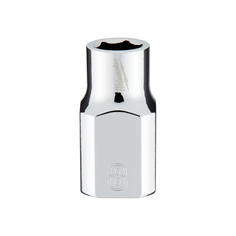 The MILWAUKEE® 3/8″ Drive 8mm Metric 6-Point Socket with FOUR FLAT™ Sides was designed from the ground up to be part of the most versatile socket family. The 3/8″ drive sockets are wrench-ready and feature an innovative design with four parallel flat sides to deter rolling. Metric socket sizes are stamped into the flats for better visibility. Optimized socket geometry helps reduce bolt rounding and stripping.