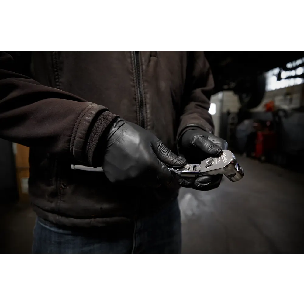 The MILWAUKEE® 3/8” Drive 9” Flex Head Ratchet with a 4⁰ arc swing provides better access and is more adaptable to working in spaces with different angles. The ratchet head can flex to 9 different positions and has a lever to lock the head in place. A slim profile head and flush directional level offer more accessibility.The all-chrome finish makes cleaning the flex head ratchet easy.This ratchet is backed by Milwaukee’s Mechanics Hand Tools Lifetime Guarantee.
