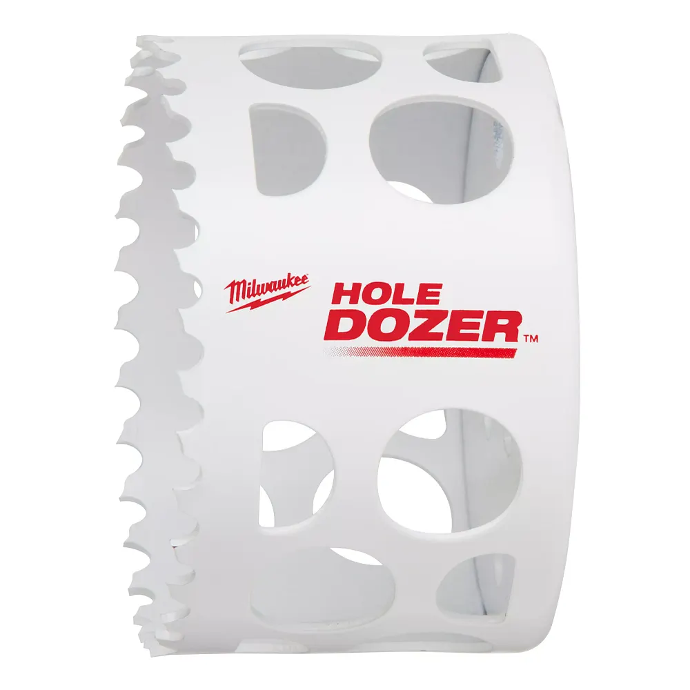 The MILWAUKEE® 3″ HOLE DOZER™ Bi-Metal Hole Saws new 3.5 TPI tooth design offers the longest life in metal applications. These HOLE DOZER™ Bi-Metal Hole Saws feature the industry’s only Lifetime Tooth Break Warranty and take on all general purpose applications, making them the most durable hole saws. Our ALL-ACCESS SLOTS solve the frustration of plug removal for more productivity with less downtime between holes. The new slot design also offers increased pilot visibility for accurate placement and faster chip ejection keeping the cut cool. HOLE DOZER™ Thermoset Coating allows for faster cutting and is optimized for cordless tools, delivering 25% more holes per charge. Milwaukee HOLE DOZER™ Bi-Metal hole saws are proudly made in the USA.