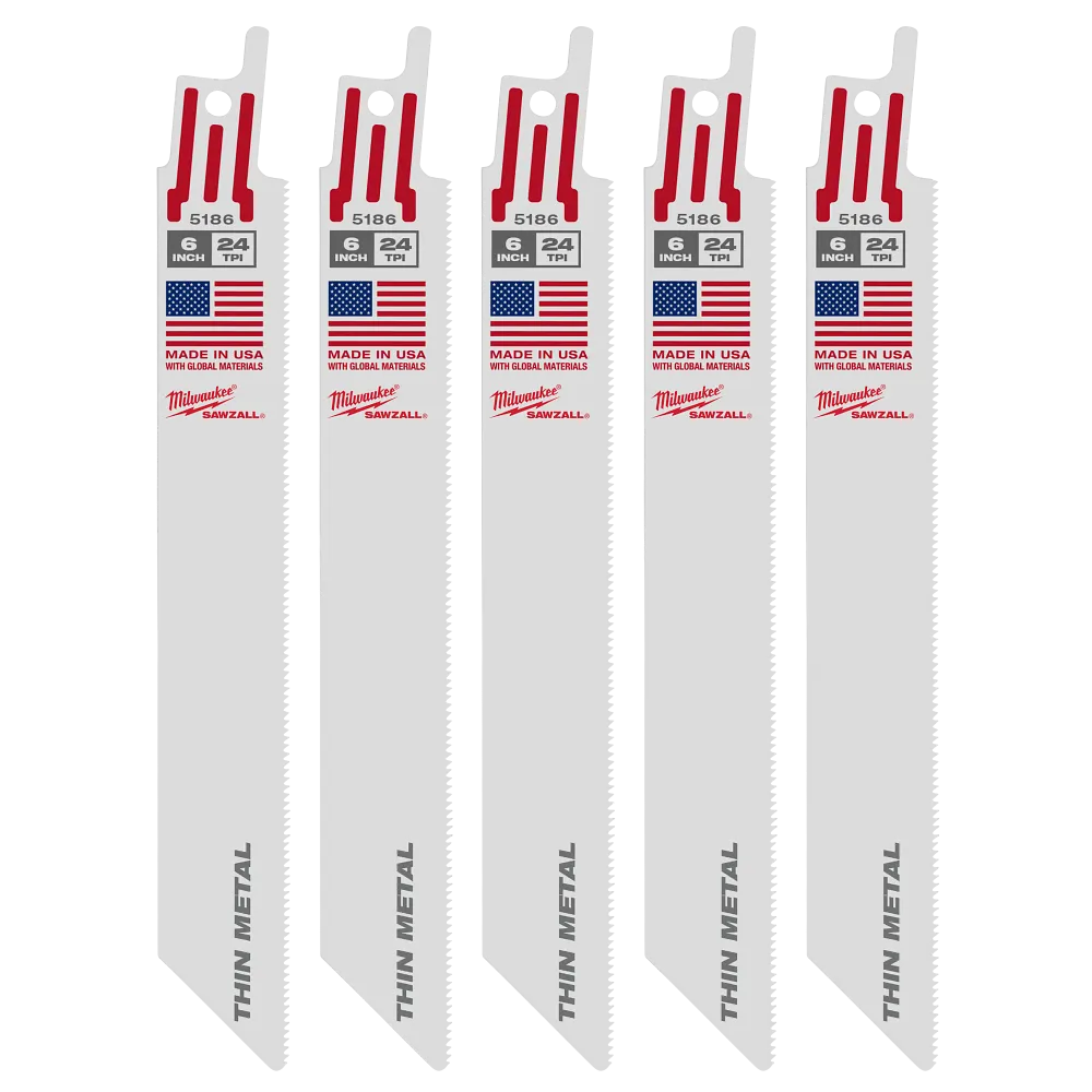 6″ 24 TPI SAWZALL® Blade for Thin Metal (5 PK)