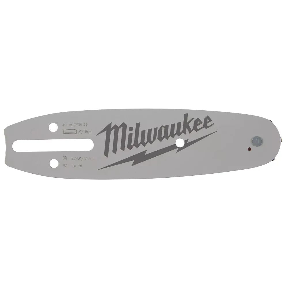 The MILWAUKEE® 6″ 3/8″ LOW PROFILE™ Pitch, .043″ Gauge Guide Bar is designed with a smaller radius nose for easy access in tight spaces and engineered with lightweight materials for easy maneuvering. The narrow kerf bar offers more cuts per charge versus standard kerf bars to help maximize battery efficiency. This bar is recommended for use with the M12 FUEL™ HATCHET™ 6” Pruning Saw (2527-20) and 6″ 3/8″ LOW PROFILE™ Pitch, .043″ Gauge Saw Chain (49-16-2732) and fits saws with an A041 tail mount & narrow kerf chains of the same pitch, gauge, length, and drive links.