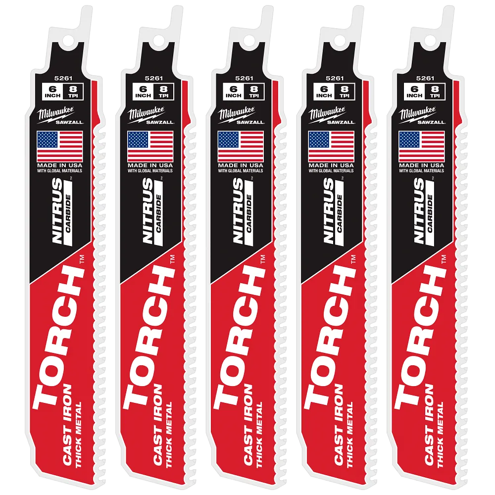 The MILWAUKEE® TORCH™ with NITRUS CARBIDE™ SAWZALL® Blade for Cast Iron and other thick metals delivers the fastest cutting, and longest life with a breakthrough Carbide Technology. These NITRUS CARBIDE™ reciprocating saw blades are engineered to dissipate heat better than any other demolition blade for faster cutting