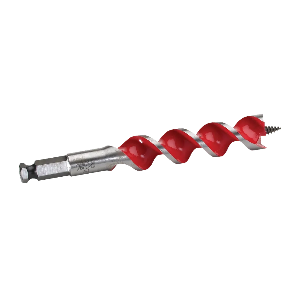 The Milwaukee® 7/8 in. x 6-1/2 in. auger bit features double wing spurs for fast, clean holes in wood. Designed with electricians, plumbers, utilities and other trades in mind, Milwaukee auger bits are impact-rated, so they’re strong enough for a variety of applications. The double wing spurs continually scribe the hole, producing smooth holes without breakout. The polished and coated flute finish means chips won’t stick, eliminating time-consuming stops to clean the bit.
