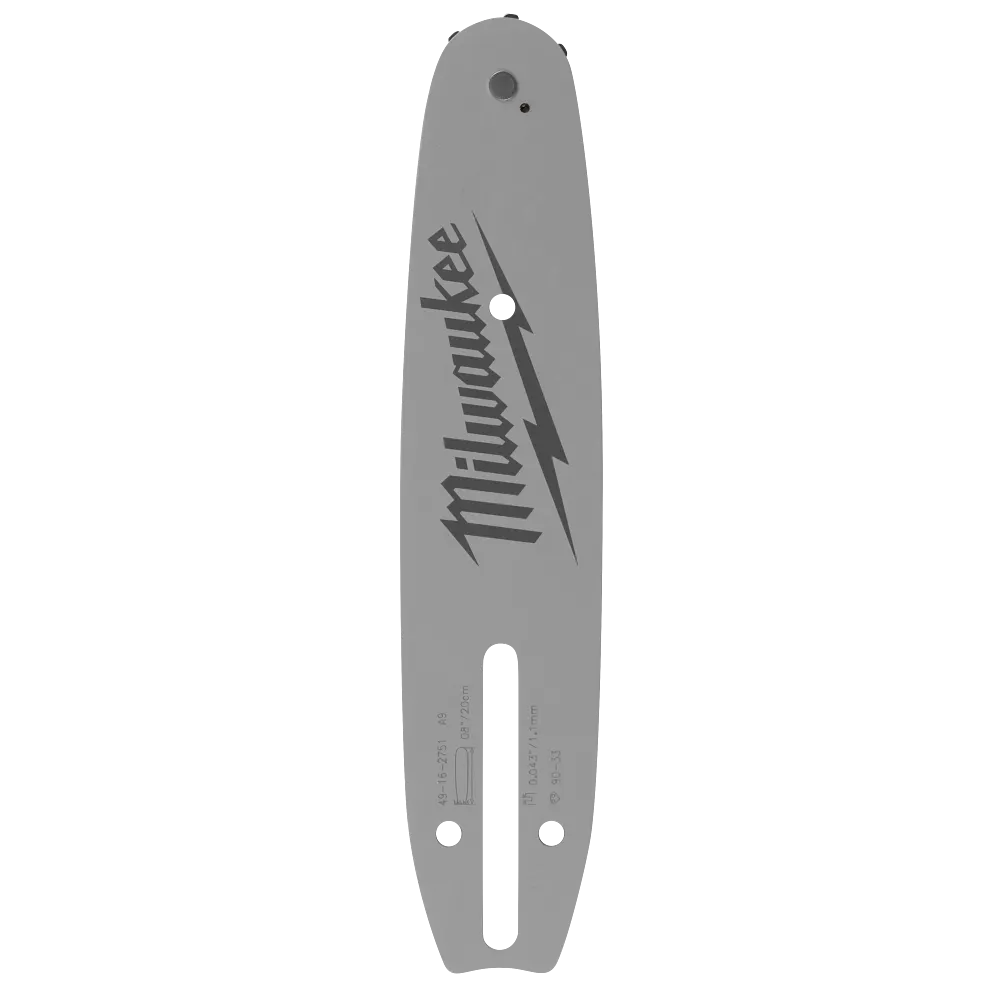The MILWAUKEE® 8″ 3/8″ LOW PROFILE™ Pitch, .043″ Gauge Guide Bar is designed with a smaller radius nose for easy access in tight spaces and engineered with lightweight materials for easy maneuvering. The narrow kerf bar offers more cuts per charge versus standard kerf bars to help maximize battery efficiency. This bar is recommended for use with the M18 FUEL™ HATCHET™ 8″ Pruning Saw (3004-20) and 8″ 3/8″ LOW PROFILE™ Pitch, .043″ Gauge Saw Chain (49-16-2750) and fits saws with an A041 tail mount & narrow kerf chains of the same pitch, gauge, length, and drive links.
