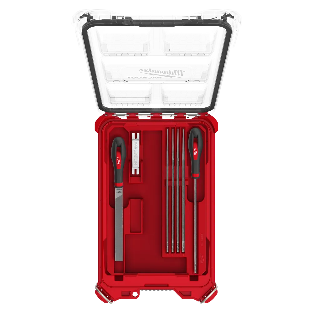 The MILWAUKEE® 9pc Saw Chain Sharpening Set with PACKOUT™ Low-Profile Compact Organizer