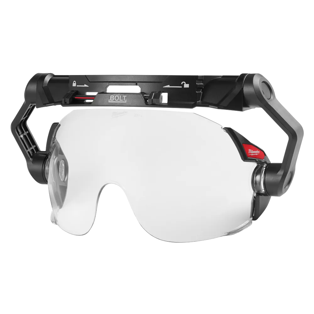 The MILWAUKEE® BOLT™ Eye Visor Mount Replacement (Helmet & Hard Hat) is designed to allow for quick and tool-free visor replacement. This is the mount replacement for BOLT™ eye visors (Compatible with MILWAUKEE® Helmets and Hard Hats). The mount features micro-adjustments to fit comfortably and securely on a wide array of faces. The mount has a wide pivoting angle to allow seamless headlamp compatibility. White lock and unlock marks assist users in securely attaching the mount to the front slots of MILWAUKEE® Helmets and Hard Hats. This eye visor mount is part of the BOLT™ accessory system which allows users to Secure Accessories Simultaneously.