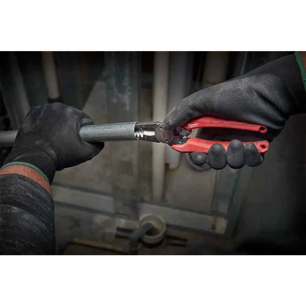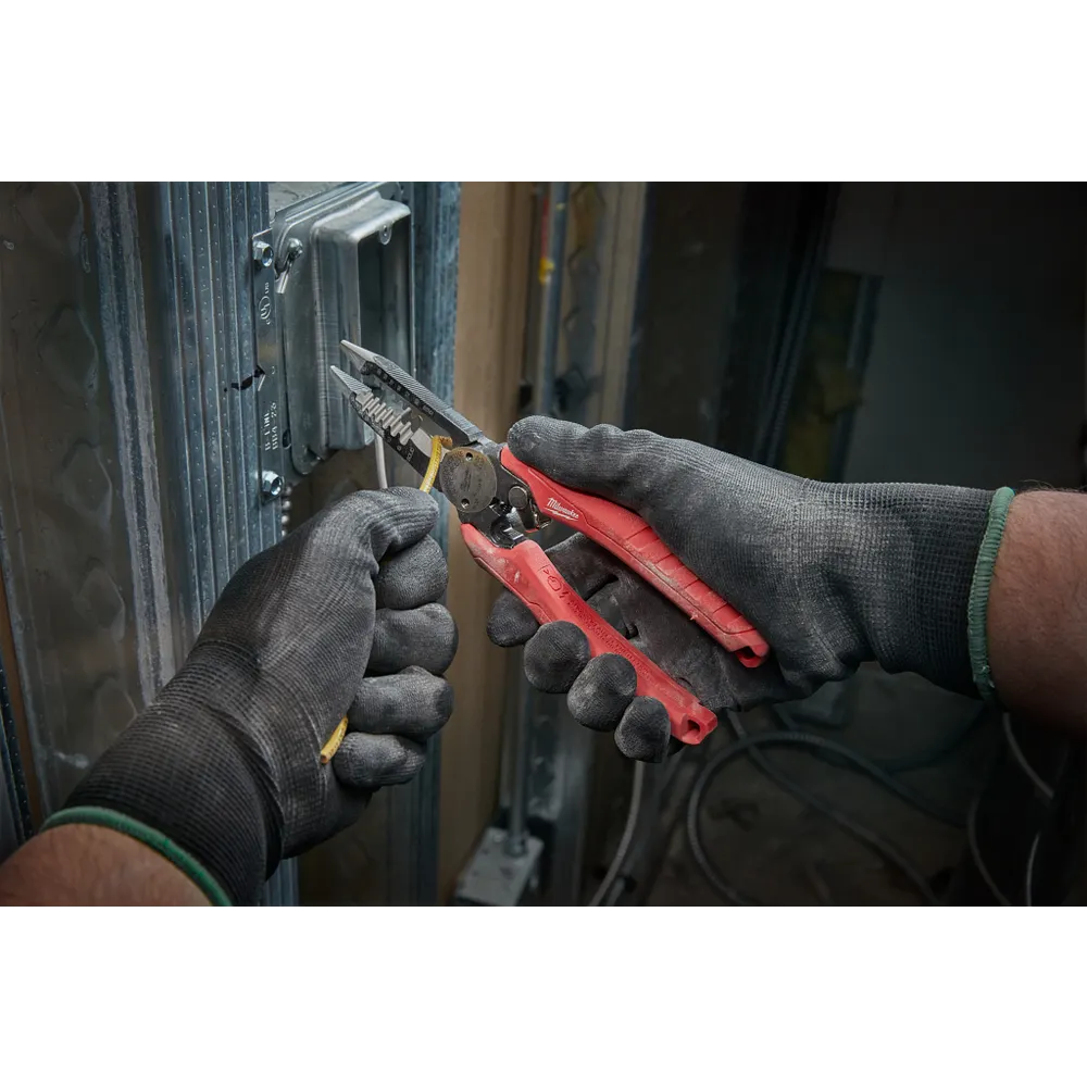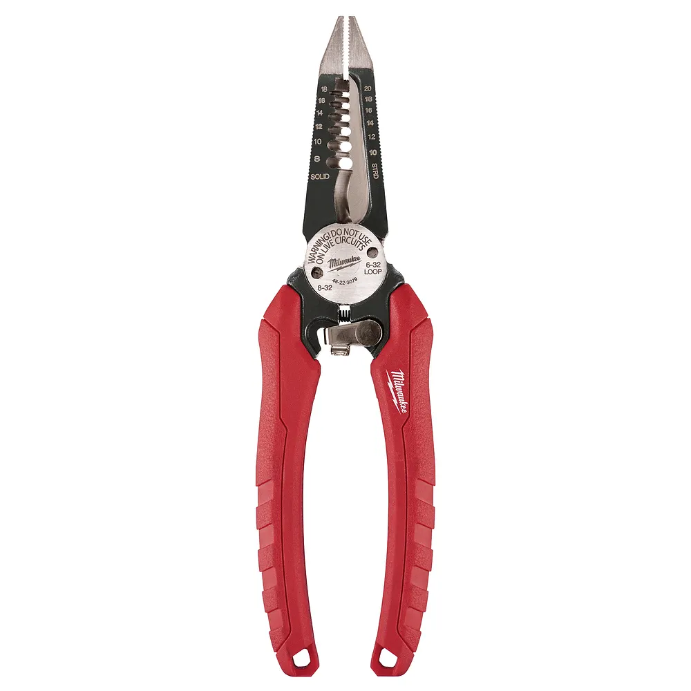 Milwaukee 6 in. 1 combination pliers feature a revolutionary, forged dual head design for wire stripping and needle nose functionality. A unique reaming design is integrated into the pliers head for smoothing out rough edges of metal pipe, and a curved blade design allows for clean cuts through larger wire sizes. These pliers have the capability to cut #6 and #8 bolts and feature a swing-lock design for fast one-handed operation, and won’t open when stored in a pouch or backpack. Milwaukee 6 in. 1 combination pliers deliver maximum productivity for the trades. The Milwaukee 48-22-3079 is perfect for the toughest of jobsites. Milwaukee stands behind their product and offers a Limited Lifetime Warranty with all combination pliers.