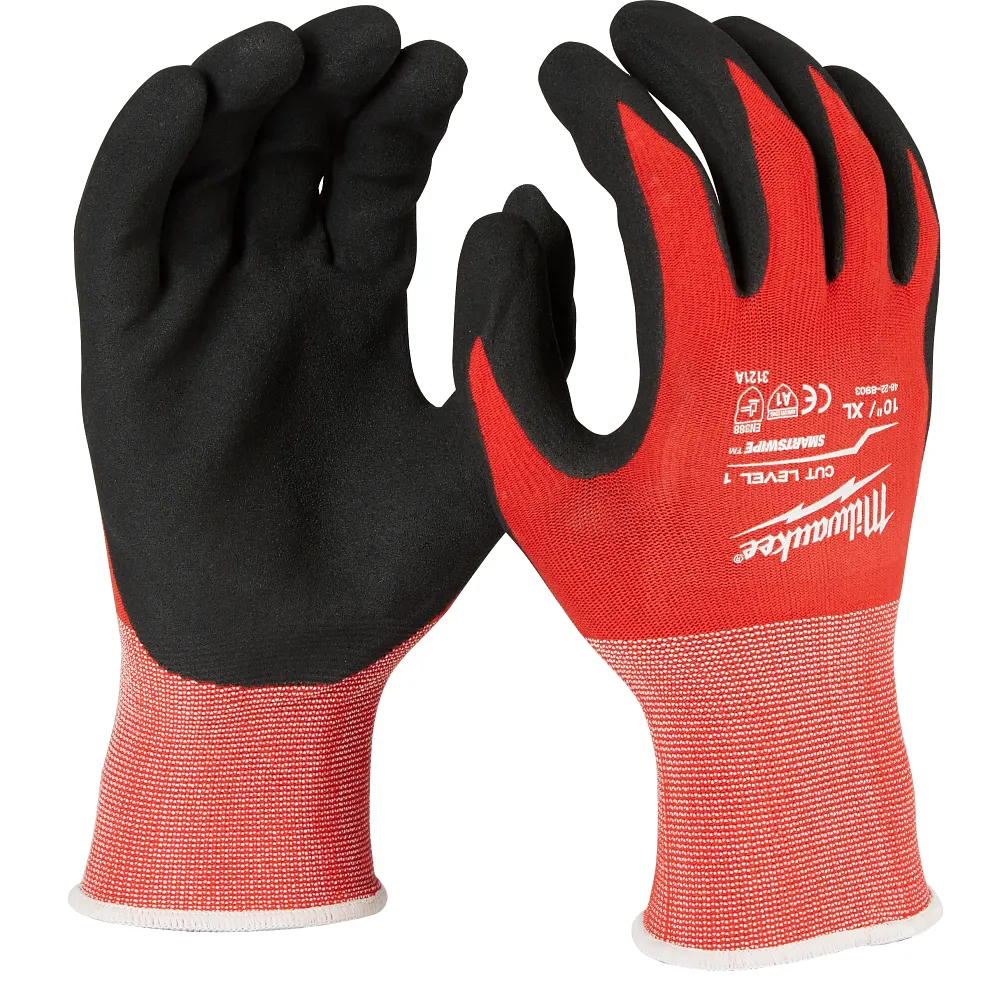 The MILWAUKEE® ANSI/ISEA 105-2016 Cut Level 1 Nitrile Dipped Gloves are designed to be more durable and provide better protection. The soft and comfortable liner wicks away moisture during extended wear, while the nitrile coating provides better grip and durability. These Milwaukee Nitrile Dipped Gloves allow for improved dexterity and easier mobility when handling small objects. SMARTSWIPE™ fingertips & palms provide full access to touchscreen devices without removing the gloves. MILWAUKEE® Nitrile Dipped Gloves feature a color-coded wrist band and back of hand logo for easy cut level identification.