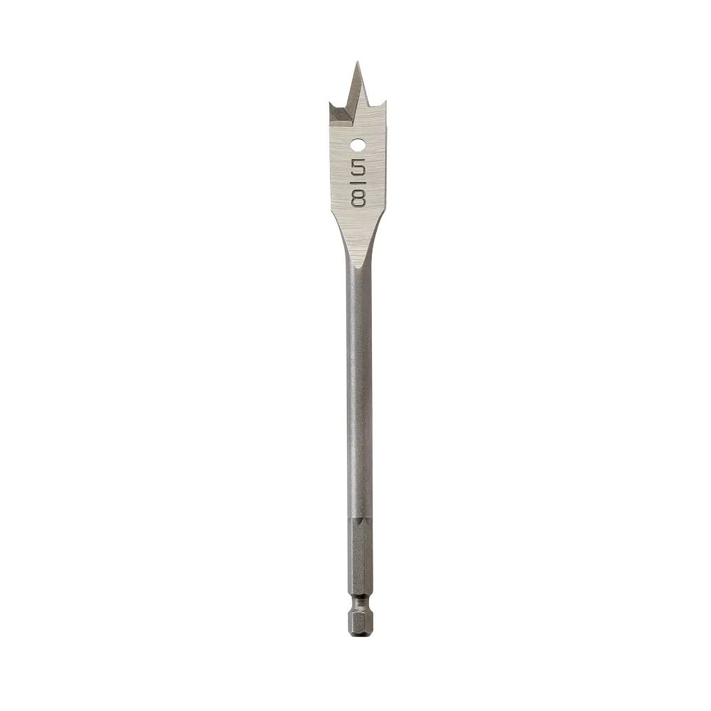 Bore small, clean holes at any angle in a variety of materials with the economical MILWAUKEE® 5/8″ x 6″ Flat Boring Bit. This premium quality Flat Boring Bit is made of heat-treated high carbon steel, so the drill point and cutting edge can be resharpened for cost savings and long life. Bore clean, fast holes at any angle in wood, plastic, plywood, and Formica. This bit offers a 6″ drilling depth but can be used with a 12″ extension (48-28-3350) for extended deep-hole drilling. 3/16″ shank diameter.