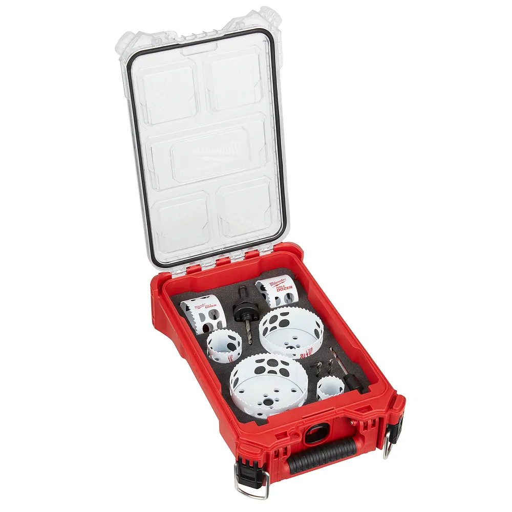 The MILWAUKEE® 10-Piece HOLE DOZER™ Bi-Metal Hole Saw Kit PACKOUT™ Compact Organizer features a new 3.5 TPI tooth design that offers the longest life in metal applications. These HOLE DOZER™ Bi-Metal Hole Saws feature the industry’s only Lifetime Tooth Break Warranty and take on all general purpose applications, making them the most durable hole saws. Our ALL-ACCESS SLOTS solve the frustration of plug removal for more productivity with less downtime between holes. The new slot design also offers increased pilot visibility for accurate placement and faster chip ejection keeping the cut cool. HOLE DOZER™ Thermoset Coating allows for faster cutting and is optimized for cordless tools, delivering 25% more holes per charge. Milwaukee HOLE DOZER™ Bi-Metal hole saws are proudly made in the USA.