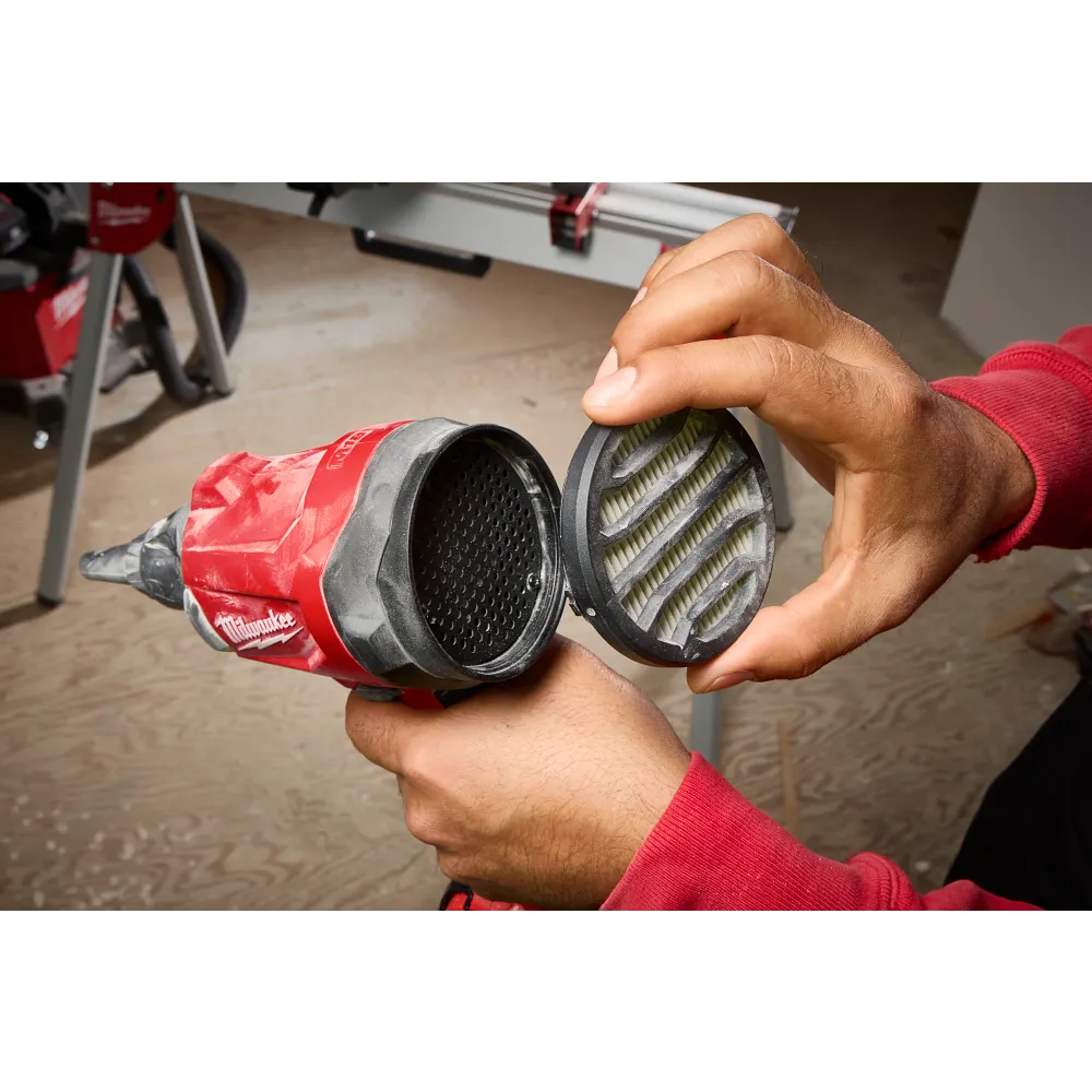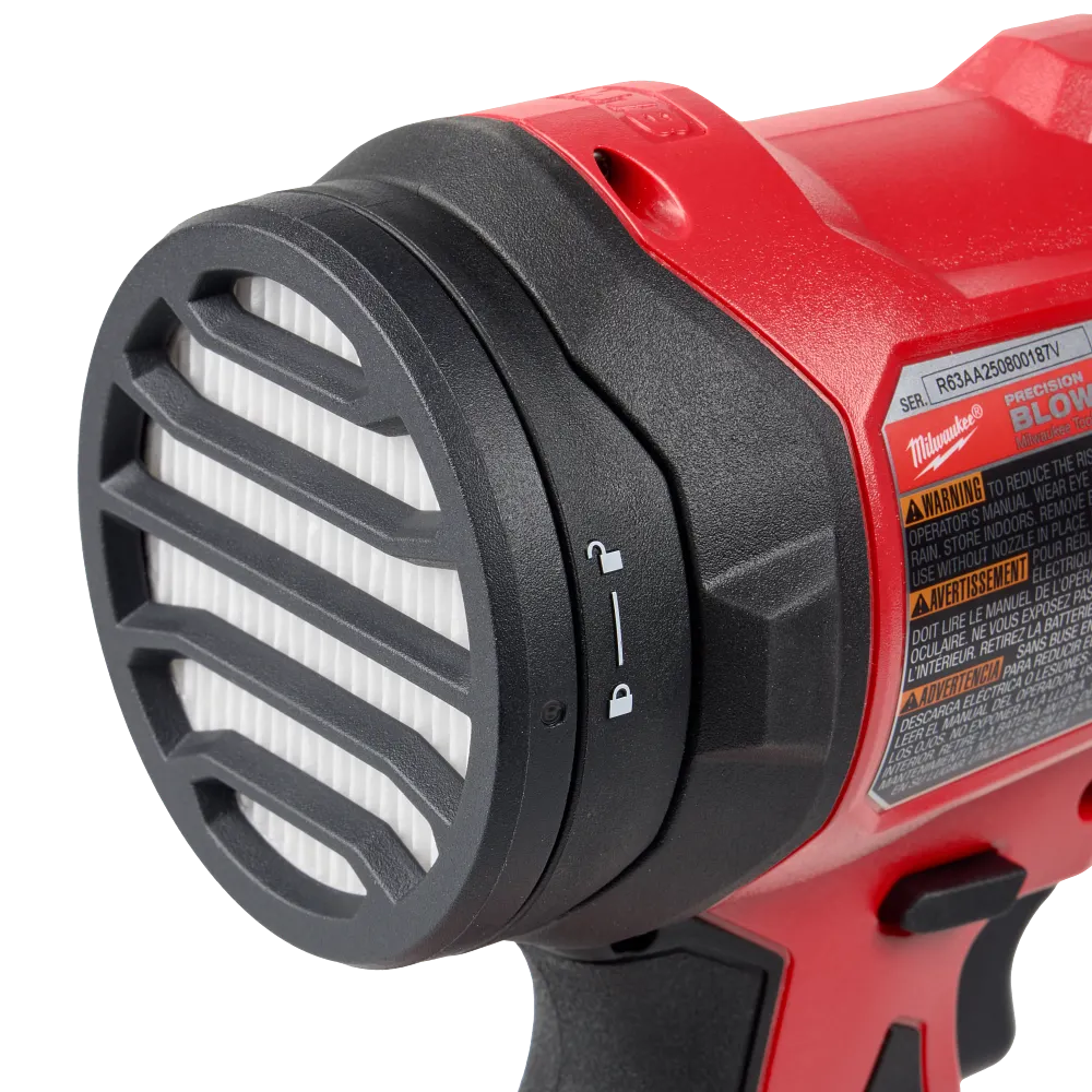 The MILWAUKEE® Inlet Filter (49-90-1949) is compatible with the M18™ Brushless Precision Blower (0887). The filter is easy to install with a quarter-turn lock. This filter is dry-cleanable and reusable after cleaning.
