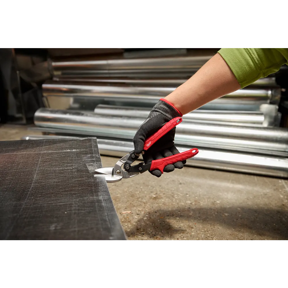 MILWAUKEE® Left Cutting Offset Aviation Snips are built for long life and clean cuts. Forged blades with laser-hardened edges are durable and deliver long life. Sharp, serrated blades provide smooth and clean cuts. The handles are designed to deliver easy, low-effort cutting. BOLT LOCK™ ensures the blades won’t loosen and chrome plating provides rust protection. The color-coded handles allow for easy identification on the job. The metal lock secures the tool for storage and is easily operated with one hand. The offset model features a 45-degree offset handle for clearance over the cut material. These snips are ideal for making straight, left, or right cuts.