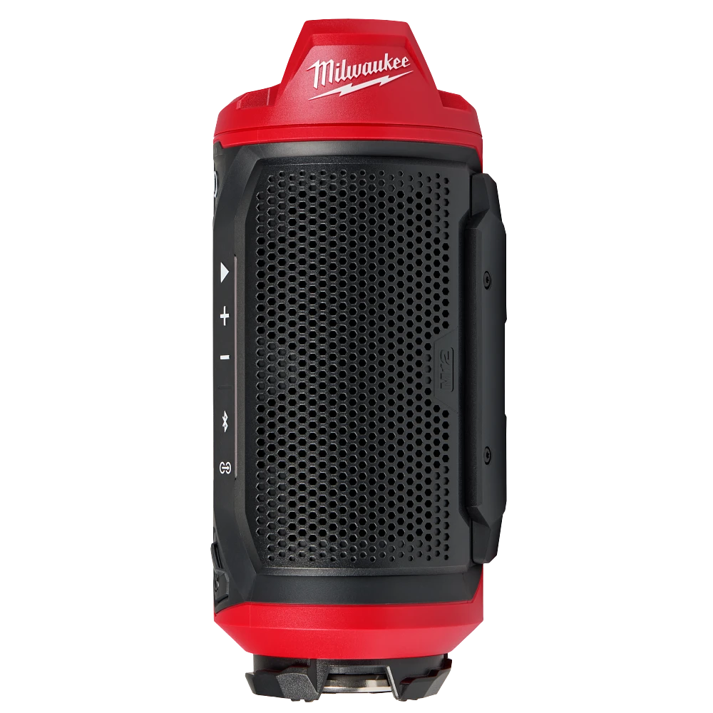 The MILWAUKEE® M12™ Bluetooth® Jobsite Speaker w/ PACKOUT™ Compatibility delivers CLEAR, PORTABLE SOUND and JOBSITE VERSATILITY. The 3.5” woofer and high-frequency tweeter deliver optimized sound for personal workspaces. Bluetooth® 5.3 provides up to 200 feet of range to keep you connected throughout the jobsite. AUDIO LINK allows you to play music through multiple compatible Milwaukee® devices (over 200+) creating a larger sound experience. The M12™ Bluetooth® Jobsite Speaker w/ PACKOUT™ Compatibility provides up to 10 hours of runtime at 100% volume on the M12™ REDLITHIUM™ XC4.0 Battery. The built-in equalizer settings allow you to customize the bass and treble to your preferred sound. Featuring twist-to-lock PACKOUT™ Connectivity, the speaker attaches to the top of PACKOUT™ solutions for secure storage and transport throughout the jobsite. Additionally, the kitted PACKOUT™ Mount, integrated nail hook, d-hook, and various listening orientations provide you with maximum JOBSITE VERSATILITY. This speaker withstands the most demanding jobsite environments with an IP64 rating. Charge up personal devices with USB-C 3.0A device charging wherever you go.
