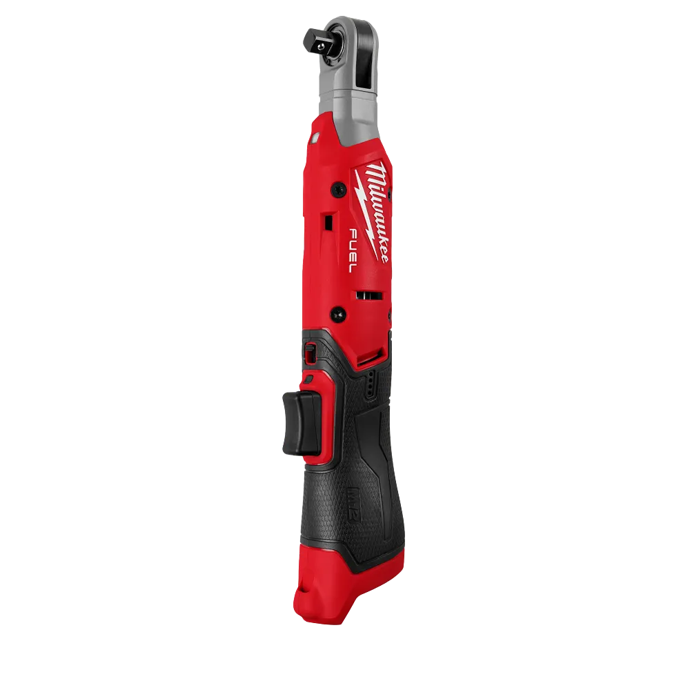 The MILWAUKEE® M12 FUEL™ 3/8″ Ratchet redefines productivity, capability, & comfort for users looking for the ultimate cordless ratchet to tackle any job. Our new POWERSTATE™ Brushless outer rotor motor delivers the BEST COMBINATION OF POWER AND SPEED with 70 ft-lbs of torque to breakaway stubborn fasteners, & 400 RPM to remove and install fasteners at higher rates of speed. This solution also delivers the MOST COMPACT HEAD & BODY SIZE to allow users full body access into tight spaces, maintaining a 3/4″ head profile & at only 1.5 lbs bare tool, without sacrificing durability. The M12 FUEL™ Ratchet provides users UNMATCHED COMFORT with a dedicated contoured grip & reduces fatigue during a full day of wrenching. It also features a new-to-world modular trigger cap, which will allow users to switch between various button or paddle trigger configurations for customizable comfort. Equipped with a targeted LED work light, battery isolation system, and & optimized forward reverse shuttle – this ratchet tackles core user frustrations and delivers uncompromising performance.