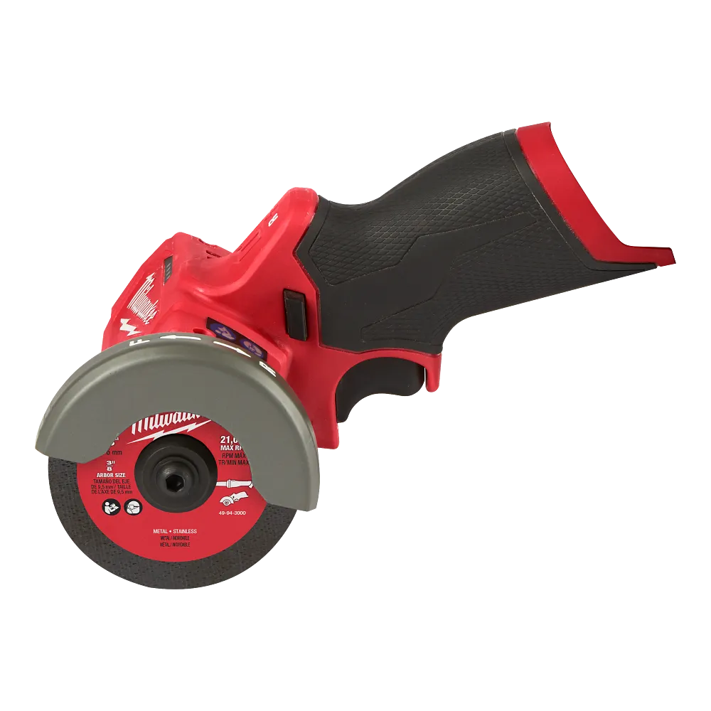 The M12 FUEL™ 3 in. Compact cut off tool delivers multi-material cutting capability in an ergonomic package, optimized for one-handed use. Spinning at 20,000 RPM and featuring a POWERSTATE™ brushless motor, the 2522 delivers fast and accurate cutting performance in a wide range of materials. The unique reversible blade rotation feature provides users ultimate control over material removal, along with the ability to select their desired blade rotation for the direction they need to cut. For ultimate cutting versatility, the 2522 ships with three accessories: a metal cut off wheel, a diamond tile blade, and a Carbide abrasive blade. The M12 fuel 3 in. Compact cut off tool also includes a tool free accessory guard & shoe that includes a vacuum adapter for dust mitigation as well as cut depth adjustment. Lastly, the tool also features tool free guard adjustment and an LED light.