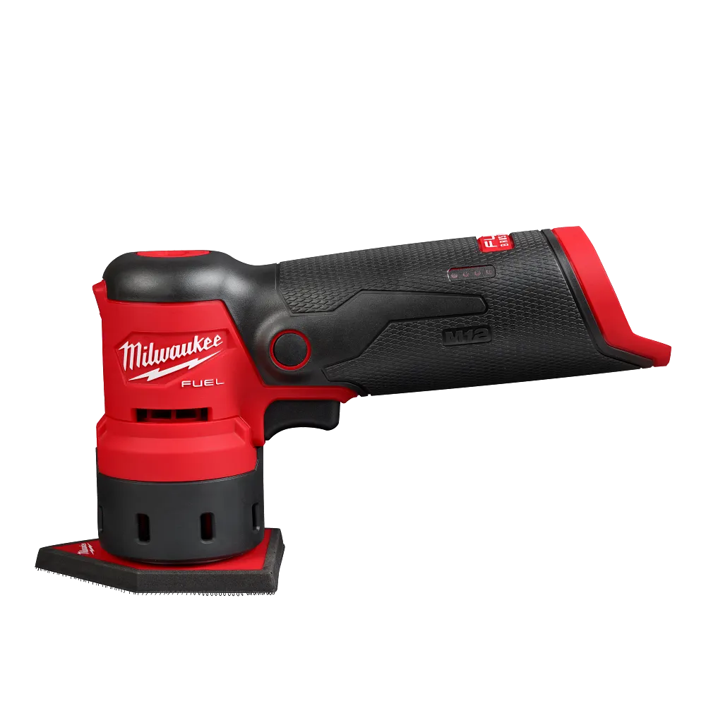 Designed for the professional carpenter, remodeler, or general contractor; the MILWAUKEE® M12 FUEL™ Orbital Detail Sander is optimized for precision and designed to complement larger sanders on the jobsite. The M12 FUEL™ Orbital Detail Sander delivers faster detail sanding, stain grade finish, and more access in corners and contours. MILWAUKEE® POWERSTATE™ Brushless Motor and MILWAUKEE® REDLINK PLUS™ intelligence provides the power to remove material up to 2X Faster than traditional hand sanding solutions on the market. The detail sander features an orbital sanding motion with a 1.5mm orbit diameter to deliver a clean, consistent stain-grade surface finish. The unique pad shape provides sharp, straight edges for greater accuracy and access into confined corners. The lightweight and ergonomic design at 1.3lbs provides unmatched maneuverability. The innovative counterweight mechanism minimizes vibration to reduce user fatigue. This detailing sander features a variable speed trigger with a lock-on button and four speed settings from 14K – 4K for increased control across a wide variety of materials. The optional sponge pad allows the abrasive to contour to the work surface when working with complex trim profiles, while the pad saver protects against excessive heat buildup to extend the life of the backing pad. The battery-powered detail sander features an integrated LED light, battery fuel gauge, and carries Milwaukee Tool’s industry-leading 5-year limited power tool warranty.