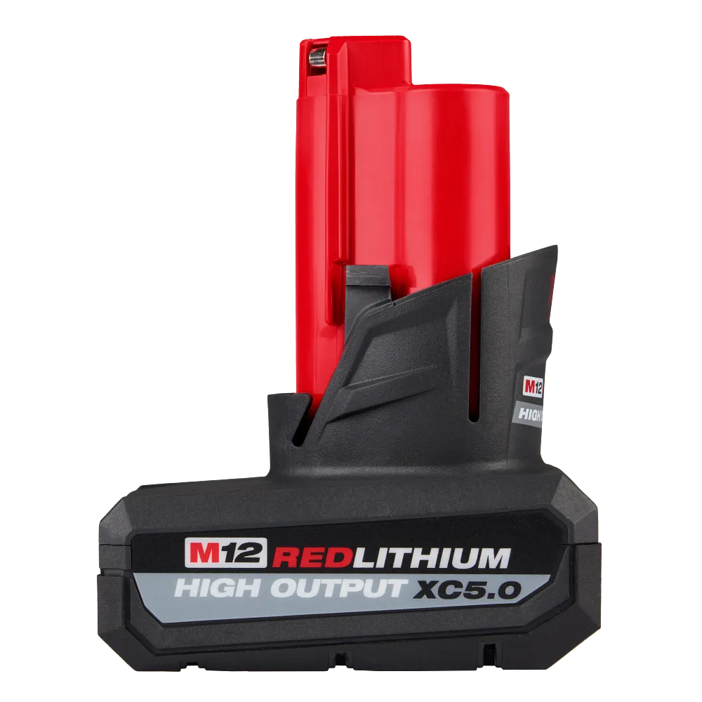 The MILWAUKEE® M12 REDLITHIUM™ HIGH OUTPUT™ XC5.0 Battery Pack delivers 25% more power and runs 25% cooler than other Milwaukee M12 REDLITHIUM™ XC battery packs. The increase in power elevates the performance of the entire MILWAUKEE® M12™ system and drives the next breakthrough in M12 FUEL™. The lithium-ion battery delivers fade-free power and runs substantially cooler through demanding applications, allowing you to push your cordless power tools throughout a wide range of applications. Each battery pack is built for heavy-duty use, runs cooler, and performs in climates below 0°F/-18°C. In addition, the M12 REDLITHIUM™ HIGH OUTPUT™ XC5.0 is built with a resistant housing, increasing the protection against exposure to common oils, greases, and solvents found in transportation maintenance and manufacturing environments. The M12 REDLITHIUM™ HIGH OUTPUT™ XC5.0 is fully compatible with 125+ M12™ solutions.