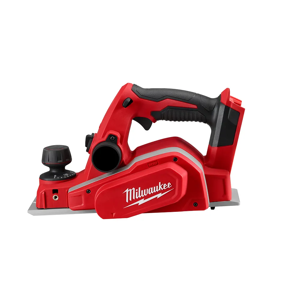 The M18™ 3-1/4 in. planer delivers unmatched depth control & powerful stock removal for quick and precise material removal on soft or hard woods. The planer’s powerful motor allows the user to remove up to 5/64 in. in a single pass for increased productivity. The depth adjustment knob’s 20 locking positions allows for multiple depth settings and precise depth control. in addition the depth adjustment knob does not rotate past the 0 or 5/64 setting which allows users to quickly identify at what depth they are cutting without needing to re-zero the dial. The M18™ planer also provides up to a 27/64 in. rabbet cut capacity offering users more depth of cut when making ship lap joints. A left or right chip ejection feature allows users to aim shavings away from their eyes or finished surfaces; increasing safety, productivity, and accuracy.