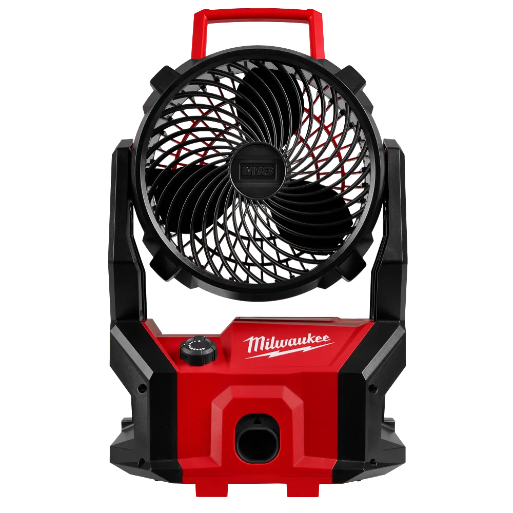 The MILWAUKEE® M18™ Brushless Fan w/ PACKOUT™ Compatibility delivers the Fastest 18V Air Speed. The brushless motor quickly propels air up to 20.5 MPH and 850 CFM making the fan ideal for personal cooling. PACKOUT™ compatibility provides unmatched mobility, saving down time spent hauling tools on and off the site. The 7-inch blade, optimized for increased runtime, delivers over 3 hours of use on high and 6.5 hours at 75% speed with the MILWAUKEE® M18™ REDLITHIUM™ XC5.0 Battery. The integrated AC plug offers the versatility to plug in a standard extension cord for extended runtime. This fan has a variable speed dial and a 300-degree adjustable head to provide optimal airflow for any job. The impact resistant design along with dust and water ingress protection withstands demanding job site environments. The keyholes, pass-through holes and PACKOUT™ compatibility allows the fan to be mounted in unique positions and orientations across the jobsite. The new M18™ Brushless Fan w/ PACKOUT™ Compatibility is the FASTEST 18V PERSONAL FAN.
