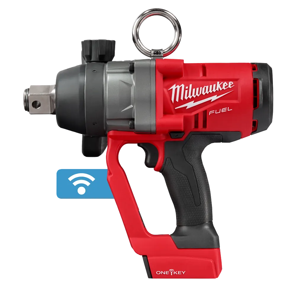 The MILWAUKEE® M18 FUEL™ 1″ High Torque Impact Wrench w/ ONE-KEY™ is the world’s first cordless 1” High Torque Impact Wrench. The POWERSTATE™ Brushless Motor delivers up to 1,800 ft-lbs of Nut-Busting Torque and 1,500 ft-lbs of fastening torque, making this the most powerful cordless impact torque wrench and enabling you to complete the most demanding applications. At only 13 lbs with battery, the tool is up to 7 lbs. lighter than corded units, providing you with less fatigue while making overhead applications easier to complete on the job site. The battery-powered impact wrench provides you with cordless convenience and eliminates your need for compressors, generators, cords, and hoses. This reduces your cost of ownership by lowering energy costs and eliminating routine maintenance on compressors and generators. With no cord or hoses, you have greater portability and the ability to complete applications you were not able to do with a corded or pneumatic unit. The REDLINK PLUS™ Intelligence ensures you achieve maximum performance and protects your high torque impact gun against overloads, over-heating, and over-discharge. M18™ REDLITHIUM™ FORGE™ Battery Packs are compatible with all M18™ tools, providing this high torque cordless impact wrench with more work per charge and more work over the life of the pack.The 4-Mode DRIVE CONTROL™ provides you with greater control over the output speed and power of the high power impact wrench. The ONE-KEY™ capabilities provide you with the ability to Customize, Track and Manage the impact wrench. ONE-KEY™ technology also gives you the ability to set a repeatable torque output for maximum control.