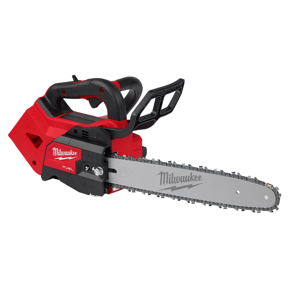 The Milwaukee® M18 FUEL™ 14″ Top Handle Chainsaw cuts faster than 35cc gas, delivers the power to cut hardwoods, and eliminates the headaches associated with gas engines. The saw is designed to meet the performance, durability, and ergonomic needs of the professional arborist, power utility linemen, and landscape maintenance professional. M18 FUEL™ technology allows the saw to reach full throttle in under 1 second providing ultimate control and cut faster than 35cc gas for increased application speed. The POWERSTATE™ Brushless Motor maintains speed under heavy loads without bogging down to outperform small gas engines and higher voltage systems. In addition to outperforming gas competitors, the saw eliminates all of the headaches associated with gas engines, such as pull starts, noise levels, emissions, and regular maintenance. The REDLINK PLUS™ Intelligence enables full-circle communication between the tool and battery, providing you with unmatched levels of performance, protection, and productivity. The M18™ REDLITHIUM™ HIGH OUTPUT™ XC 8.0 Battery (not included) provides efficient power delivery giving you longer runtime in application with the ability to make 150 cuts per charge in 4″ x4″ Cedar. The saw has a professionally demanded feature set including an easy access chain tensioner, automatic oiler, metal bucking spikes, onboard scrench storage, lanyard loop, and climbing scabbard. The M18 FUEL™ 14″ Top Handle Chainsaw is fully compatible with 250+ solutions on the M18™ system.