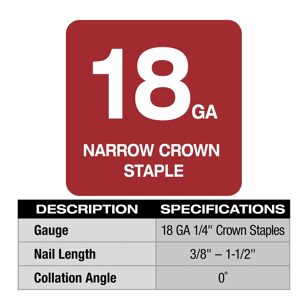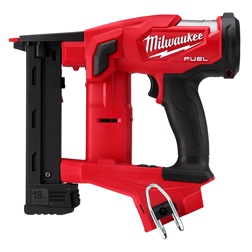 The MILWAUKEE® M18 FUEL™ 18GA ¼” Narrow Crown Stapler delivers peak productivity, providing unmatched stapling performance without the hassle of a compressor and hose. The Narrow Crown Stapler uses a nitrogen air spring for the power to consistently sink staples to the proper depth in hard materials with the ability to adjust to drive staples in soft materials without blowing through. The combination of a POWERSTATE™ Brushless Motor and REDLINK PLUS™ Intelligence provides an unmatched fire rate with zero ramp-up time, for maximum efficiency throughout the day. This battery powered narrow crown stapler is compact and lightweight, to provide better access into tight spaces and limit fatigue. The MILWAUKEE® M18 FUEL™ 18GA ¼” Narrow Crown Stapler delivers the pneumatic performance that professional carpenters and remodelers expect with the freedom and convenience of a cordless tool.