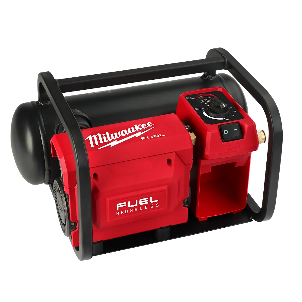 The MILWAUKEE® M18 FUEL™ 2 Gallon Compact Quiet Compressor is designed for the professional carpenter and remodeler. This quiet portable air compressor is only 68dB(A), making it the quietest cordless compressor on the market, and quieter than most corded compressors. Its compact size makes it easy to transport on, around, and back off the jobsite with a low profile and stackable design. It has the run-time a professional needs to stay productive, providing up to 1,600 18ga brad nails per charge. It is compatible with all M18™ REDLITHIUM™ batteries making it easy to swap packs and keep running to finish the job.