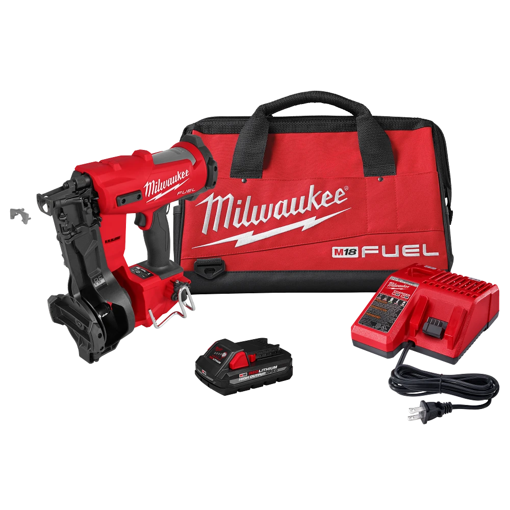 The MILWAUKEE® M18 FUEL™ Coil Roofing Nailer delivers cordless innovation to Roofing and Exterior Contractors through optimized performance, best-in-class runtime, and unmatched versatility. This solution is designed for small roofing jobs and repairs along with the added versatility of vinyl siding installation. By leveraging our nitrogen air spring technology, POWERSTATE™ Brushless motor, and REDLINK™ Intelligence, this nailer delivers the performance to seat nails at firing rates of up to 6 nails per second. When paired with the M18™ REDLITHIUM™ HIGH OUTPUT™ CP3.0 battery pack, this nailer sinks up to 1100 nails per charge, providing best-in-class runtime to maximize productivity. This tool features an attachable vinyl siding tip; increasing versatility to utilize the nailer for vinyl siding installation. The cordless roofing nailer features a pivoting belt/scaffolding hook, tool-free depth of drive adjustment, dry fire lockout, and replaceable rubber wear pads. The M18 FUEL™ Coil Roofing Nailer joins the M18™ System of over 250 solutions and is compatible with all M18™ REDLITHIUM batteries.