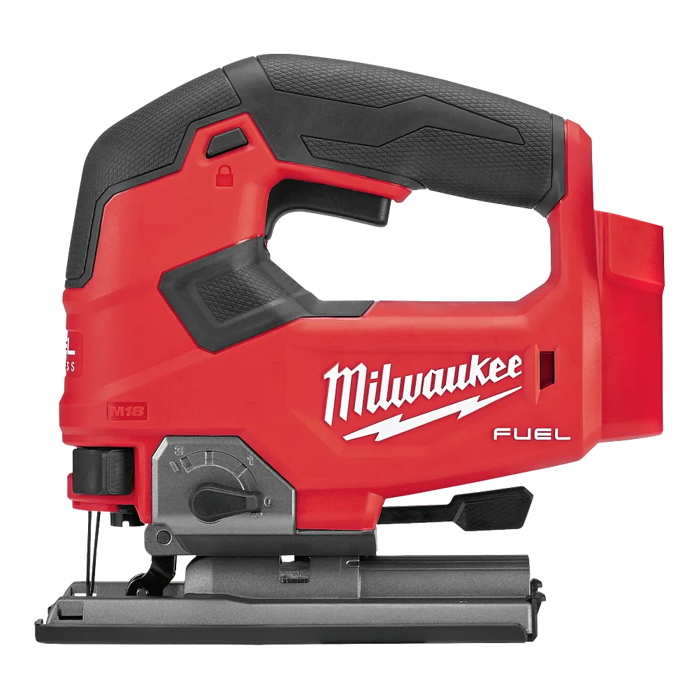 The M18™ FUEL™ D-handle jig saw combines power, blade speed and precision, to provide the highest quality cuts in a wide variety of materials. The M18™ FUEL™ D-handle jig saw leverages the POWERSTATE brushless motor and REDLINK Plus™ intelligence to provide higher blade speed than corded jig saws at 3500 strokes per minute for clean controlled cuts with minimized chipping or bucking. Leveraging the M18™ REDLITHIUM™ XC5.0 battery the M18™ FUEL™ D-handle jig saw provides up to 105 linear feet of cutting in 3/4 in. laminated particle board, delivering all day productivity with less trips to the charger. The saw features tool-less blade change, tool free bevel adjust with pin-detents at 0°; 15°; 30°; and 45° as well as an LED light and on/off blower to keep the cut line visible while cutting.