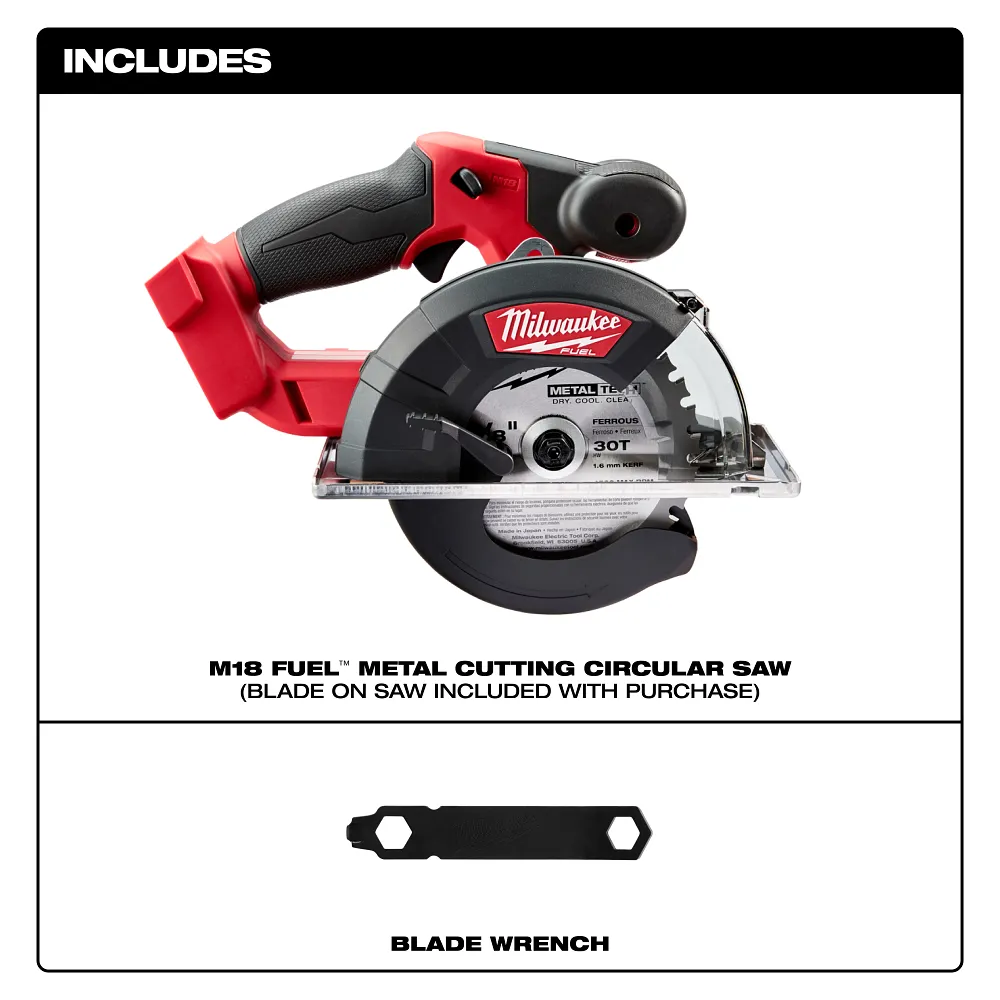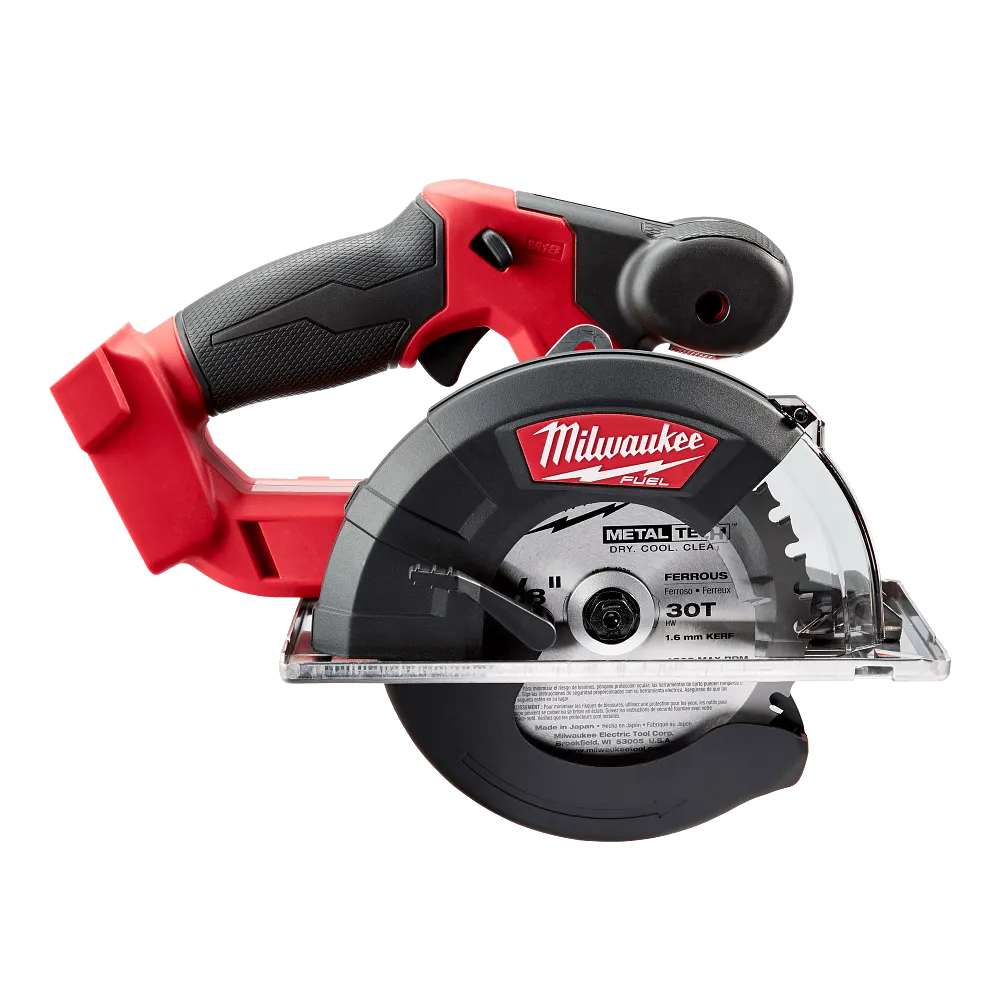 The M18 FUEL™ 5-3/8 in. – 5-7/8 in. metal saw delivers the fastest cuts with the longest tool life and up to 370 cuts in 3/4 in. EMT. This compact and lightweight metal cutting saw utilizes a POWERSTATE™ brushless motor with 3,900 RPMs to deliver the fastest cutting speeds and longest tool life on the market. The metal saw also features REDLINK Plus™ intelligence, the most advanced system of cordless power tool electronics, for maximum performance and unmatched durability. The M18™ REDLITHIUM™ XC5.0 battery pack delivers up to 370 cuts in 3/4 in. EMT which is 1 cut per minute for over 6 hours straight. The Milwaukee M18 FUEL™ 5-3/8 in. – 5-7/8 in. metal saw features a compact, low-profile design for easy handling and increased control. At only 5.9 lbs, this lightweight circular metal saw delivers easier overhead cuts and less user fatigue. The new saw offers an integrated hang hook that allows for easy storage while the tool is not in use. The extra-large cut guide, impact resistant window and LED light ensure superior line of site and the stainless steel shoe reduces chip build-up to prevent surface marring. The 2782 M18 FUEL™ metal saw features a 30T carbide-tipped metal saw blade for cool, burr-free cuts through EMT, strut, threaded rod, sheet metal, angle iron and other ferrous materials. Backed by Milwaukee’s 5-year warranty, the 2782-20 comes equipped with a 30T 5-3/8 in. metal tech ™ carbide-tipped metal saw blade and blade wrench.