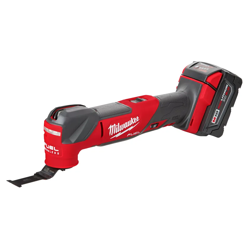 The MILWAUKEE® M18 FUEL™ Oscillating Multi-Tool Kit generates the fastest cuts, the power for demolition, and the lowest full tool vibration. The POWERSTATE™ Brushless Motor delivers 10,000 to 20,000 OPM with an aggressive 4.2-degree oscillation angle to deliver the fastest cuts over the competition. The cordless multi-tool also delivers the power to complete many demanding applications with ease, such as large cuts through hardwoods and nail embedded wood, pushing the limits of what a multipurpose oscillating tool can do. Vibration dampening technology delivers the lowest full tool vibration, making cuts more comfortably with less fatigue. REDLINK PLUS™ Intelligence achieves unmatched levels of performance, protection, and compatibility. The M18™ REDLITHIUM™ XC5.0 battery delivers more work per charge than competitive batteries on the market when used with the multitool. The M18 FUEL™ Oscillating Multi-Tool has a 10-Setting Dial with an additional Auto-Load Feature, allowing users to adjust the speed to the application. An integrated 180-degree LED light provides maximum visibility in low-light situations.