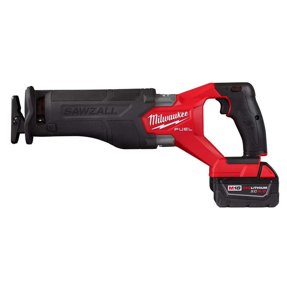 The MILWAUKEE® M18 FUEL™ SAWZALL® Recip Saw 1 Battery Kit is the next generation of legendary performance and durability, designed for the toughest applications on the job site. The M18 FUEL™ SAWZALL® is the fastest cutting reciprocating saw in its class and leverages a POWERSTATE™ Brushless Motor to provide 3,000 SPM and a 1-1/4″ stroke length for faster material removal. REDLINK™ PLUS electronics ensure maximum performance under stress as well as protection from overloading, overheating, and over-discharging. The included M18™ REDLITHIUM™ XC5.0 Battery Pack delivers up to 2.5X runtime and provides more work per charge and more work over the life of the pack than competitive batteries. The M18 FUEL™ SAWZALL® Recip Saw is designed to perform in the most demanding applications and is the most durable Milwaukee cordless reciprocating saw yet. A wear-resistant blade change, anti-corrosion blade clamp, and metal reinforced battery rails provide longer component life and stand up to the toughest jobsite conditions. The M18 FUEL™ SAWZALL® is lighter weight than the previous generation and features an adjustable shoe, integrated LED light, and a hanging hook for convenient storage on the job. This M18 FUEL™ SAWZALL® Recip Saw Kit includes, (1) M18 FUEL™ SAWZALL® Recip Saw, (1) M18™ REDLITHIUM™ XC 5.0 Battery, and (1) M18™/M12™ Charger and a Case.