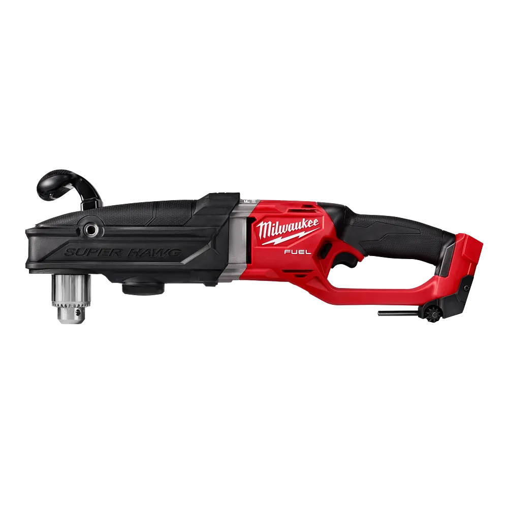 The MILWAUKEE® M18 FUEL™ SUPER HAWG® 1/2″ Right Angle Drill delivers next-generation performance with the power and speed to replace corded right angle drills. The cordless right angle drill generates corded power, works as fast as the corded competition, and delivers up to 100 2-9/16″ holes through 6″ beams per battery charge on an M18™ REDLITHIUM™ HIGH OUTPUT™ 6.0AH battery (not included). The Milwaukee SUPER HAWG® has a POWERSTATE™ Brushless Motor, REDLINK PLUS™ electronics, and is powered by REDLITHIUM™ HIGH OUTPUT™ Batteries. The drill’s all-metal 1/2″ keyed chuck provides ultimate durability and long tool life. An all-metal side handle and LED light ensures optimal control and visibility. The M18 FUEL™ SUPER HAWG® delivers the performance and run-time to complete single-family home rough-ins or the ability to rough-in multiple multi-family units on a single charge.
