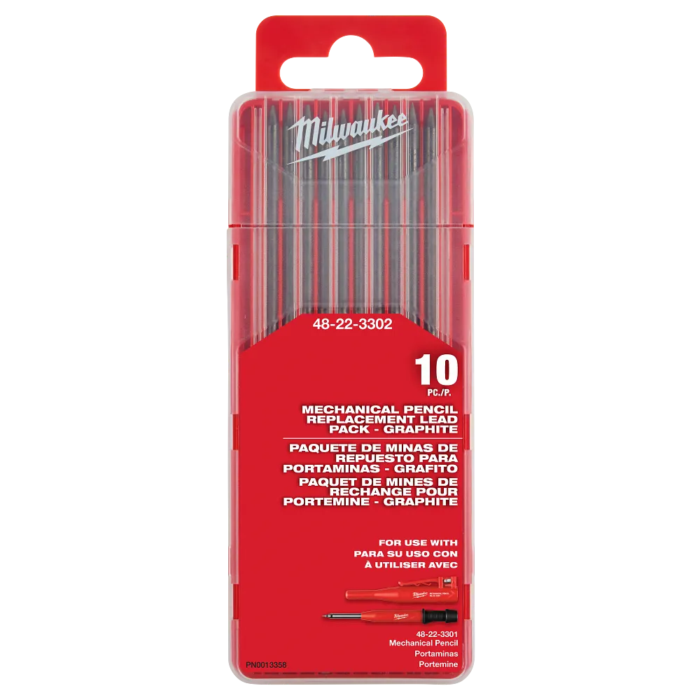 The MILWAUKEE® 10pc. Graphite Lead Pack is designed to pair with the Milwaukee Mechanical Pencil for improved marking. This pencil provides easier sharpening and better access. Milwaukee Graphite Lead is durable and writes on most jobsite materials, providing bold, precise markings. The Mechanical Pencil with Lead Pack confirms Milwaukee’s commitment to best-in-class durability and its relentless pursuit of providing innovative solutions to the end user.