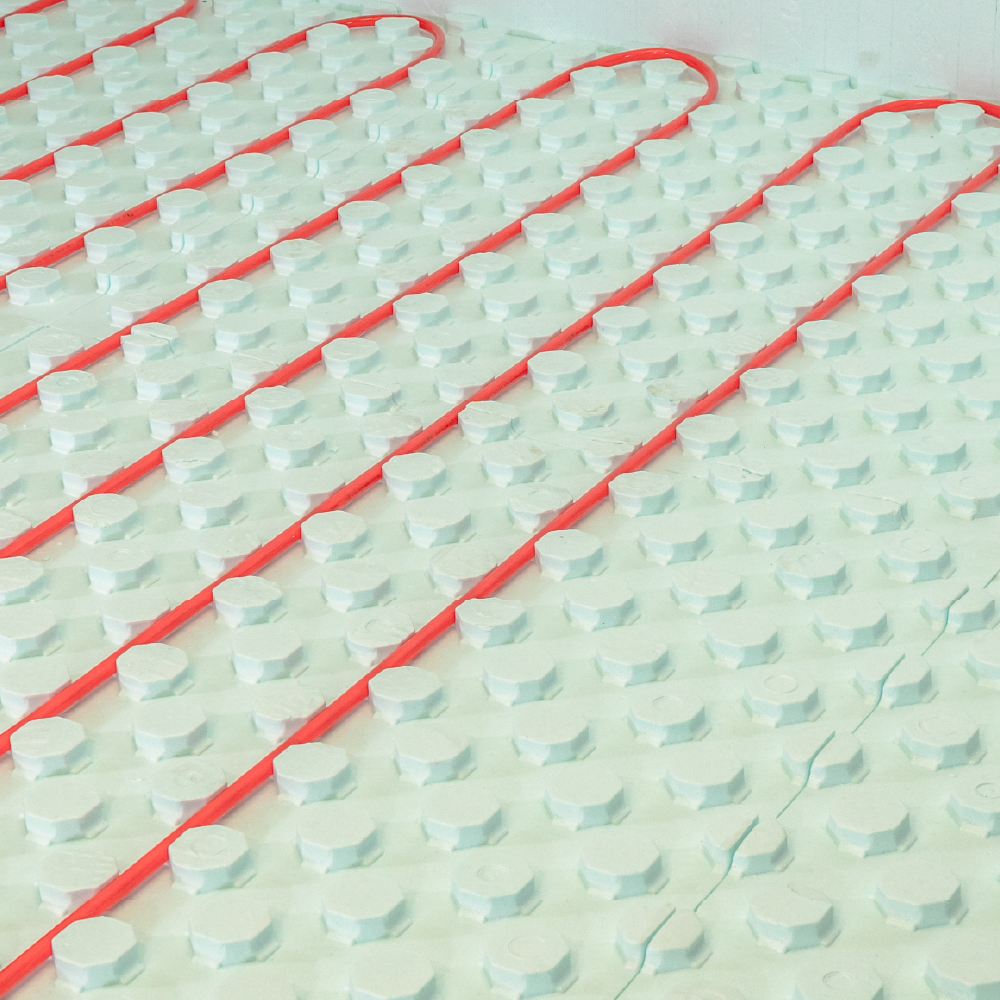 Hydrofoam® is a 4 ft x 4 ft (1219 mm x 1219 mm) molded insulation board with a multi-directional anchoring design, ideal for radiant heat systems. It insulates under concrete slabs and simplifies radiant heat tubing installation. Hydrofoam’s interlocking design on all four sides ensures a secure fit and faster installation. Available thicknesses: 2-1/2in (64 mm) – R-10 (RSI 1.76, U-value 0.57), 3 in (76 mm) – R-12.6 (RSI 2.22, U-value 0.45), 4 in (100 mm) – R-16 (RSI 2.82, U-value 0.35).