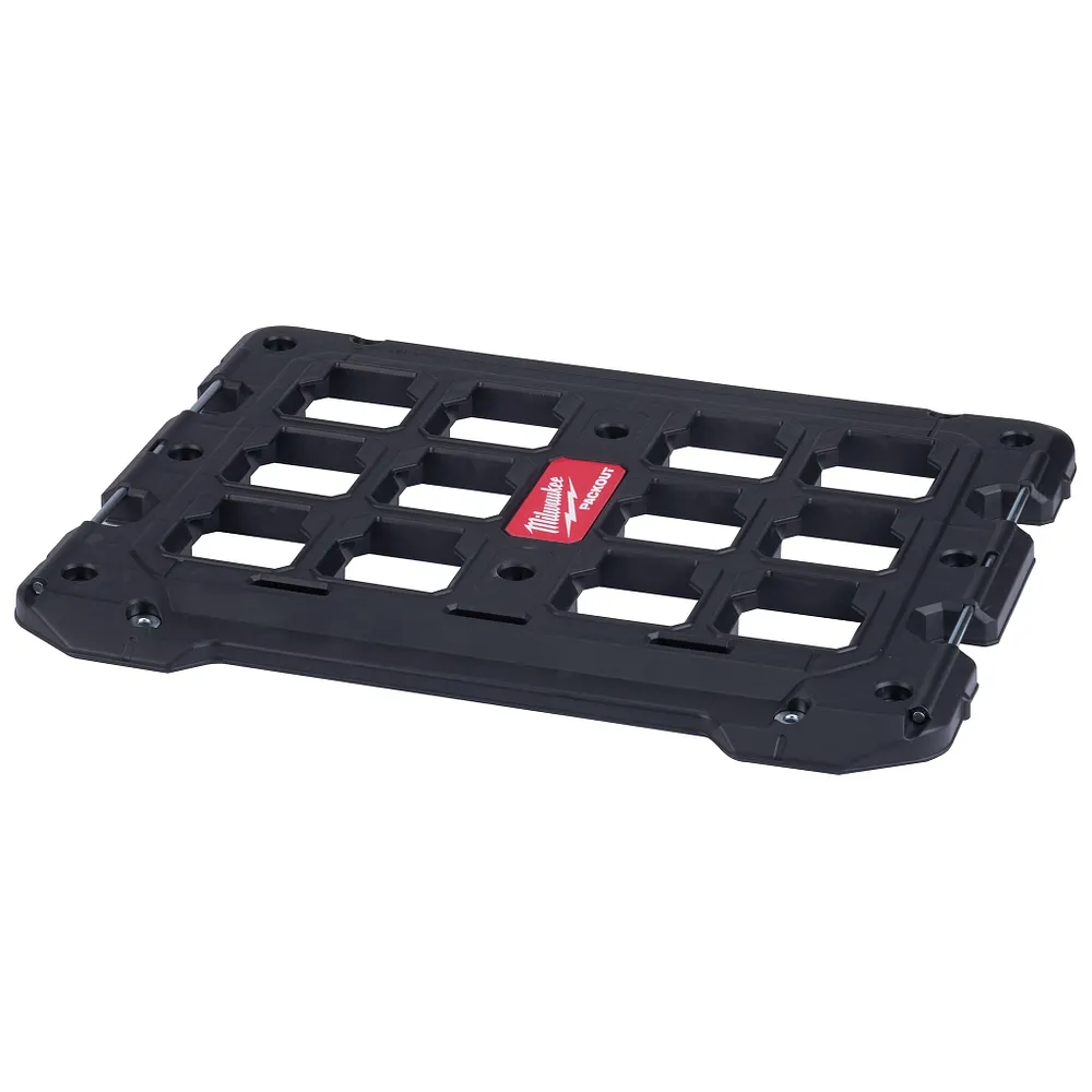 The MILWAUKEE® PACKOUT™ Modular Storage System is the industry’s most durable and versatile storage system. The PACKOUT™ Mounting Plate is constructed with impact resistant polymers, with up to a 100lbs weight capacity when mounted to the floor and 50lbs when mounted to walls. Metal reinforced mounting holes allow the Mounting Plate to be securely fastened to most surfaces, while metal reinforced tie-down points help secure job site supplies to the Mounting Plate. The PACKOUT™ Modular Storage System allows storage systems to be customized and built for easy transportation and organization of tools and accessories.
