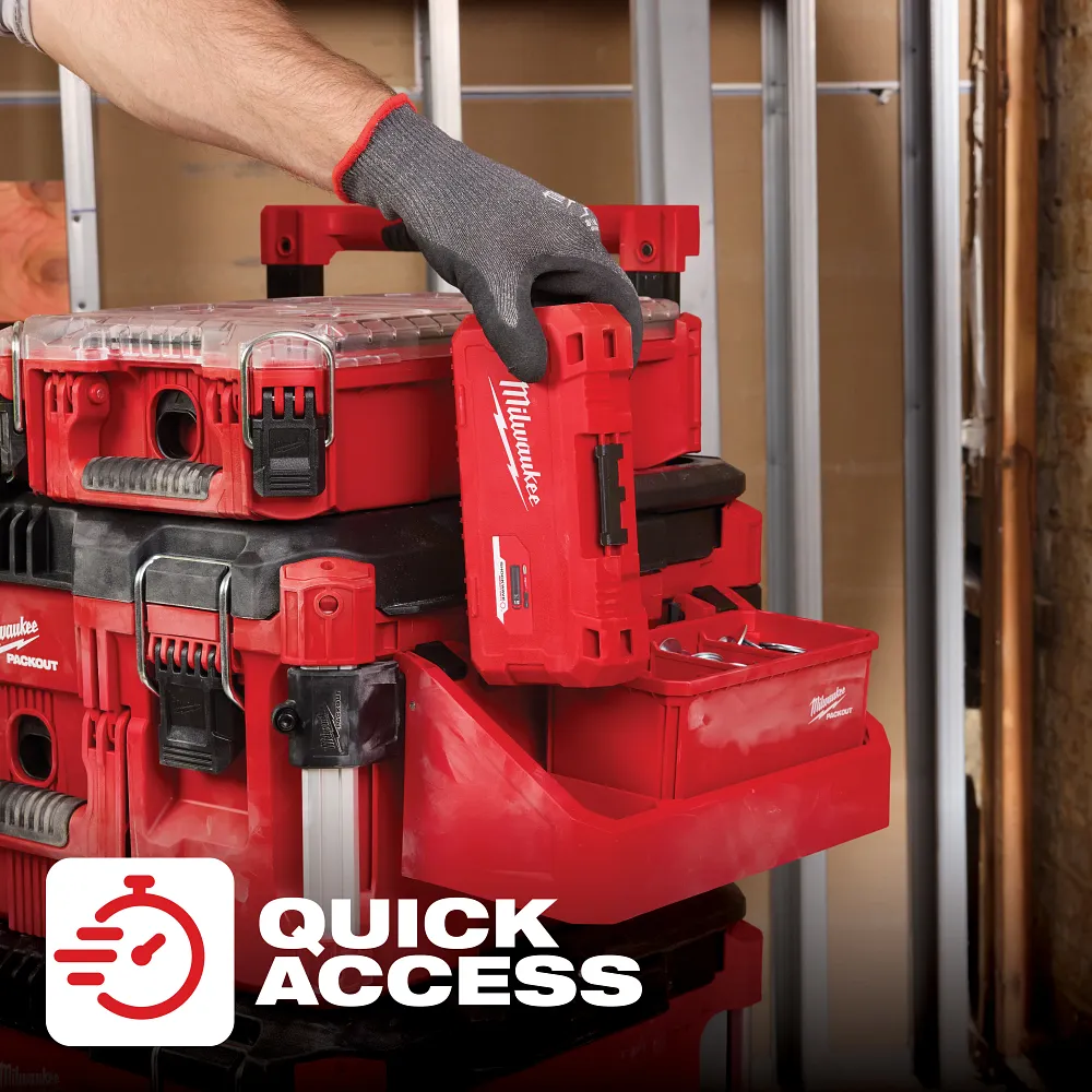 The MILWAUKEE® PACKOUT™ Tool Box Tray Attachment delivers quick access to tools and materials while on the jobsite. Fully customize your tool box with the ability to mount your accessory cases, bins, and more to the outside of your stack. The impact-resistant body offers maximum durability and can withstand tough jobsite conditions. PACKOUT™ is the industry’s most versatile and durable modular storage system.
