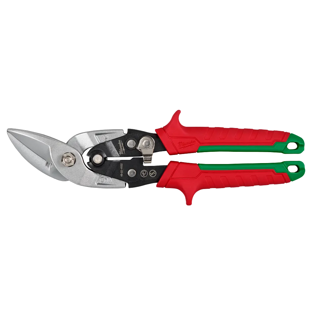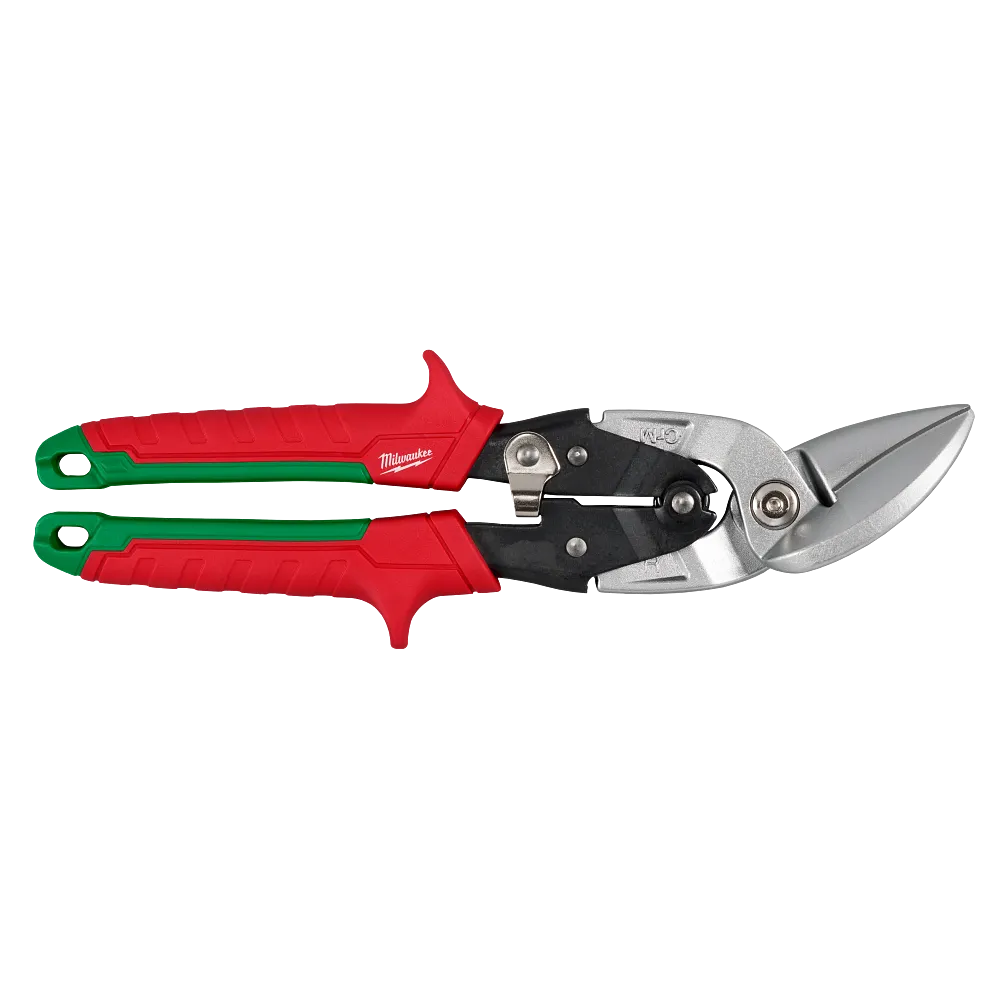MILWAUKEE® Right Cutting Offset Aviation Snips are built for long life and clean cuts. Forged blades with laser-hardened edges are durable and deliver long life. Sharp, serrated blades provide smooth and clean cuts. The handles are designed to deliver easy, low-effort cutting. BOLT LOCK™ ensures the blades won’t loosen and chrome plating provides rust protection. The color-coded handles allow for easy identification on the job. The metal lock secures the tool for storage and is easily operated with one hand. The offset model features a 45-degree offset handle for clearance over the cut material. These snips are ideal for making straight, left, or right cuts.
