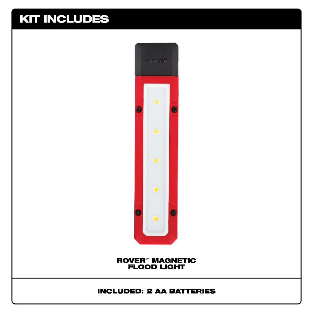 The MILWAUKEE® ROVER™ Magnetic Flood Light is a bright, versatile personal floodlight to take everywhere and stick anywhere. The LED floodlight is equipped with two built-in magnets on the top and back to mount the light in different orientations and deliver light wherever needed. The LED floodlight features 300 lumens of TRUEVIEW™ High Definition Output, providing bright, high-quality task lighting for the most accurate details and color. The Magnetic Flood Light survives repeated drops from 4 meters (12 feet) and is water and dust resistant. Maximize the light’s brightness or runtime for each job using the high and low mode options. A built-in metal clip easily attaches to pockets or tool bags and can be used as a base and rotated to direct light when resting on a surface. The ROVER™ Magnetic Flood Light’s LEDs are covered by a limited lifetime warranty. ROVER™ Flood Lights are built to tackle any location or application thrown at them with the versatility to adapt to any job site. All Milwaukee portable floodlights stick, clamp, and hang on almost anything and can be carried to cast light in multiple orientations.
