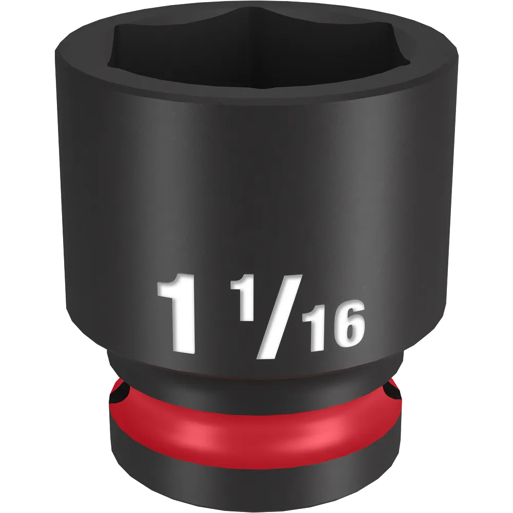 The MILWAUKEE® SHOCKWAVE Impact Duty™ 1/2″ Drive 1-1/16″ Standard 6 Point Socket features the boldest, longest-lasting markings and extreme impact durability in high torque applications. The stamped and ink-filled size marking enables an accurate socket selection every time throughout the life of the socket. Engineered with high-strength forged steel for optimized performance in heavy-duty applications, and a non-slip hex geometry prevents fastener rounding. The dual-hole design and ring groove allow for easy socket attachment and removal. All SHOCKWAVE Impact Duty™ Sockets are backed by a Lifetime Guarantee and meet ASME industry standards.