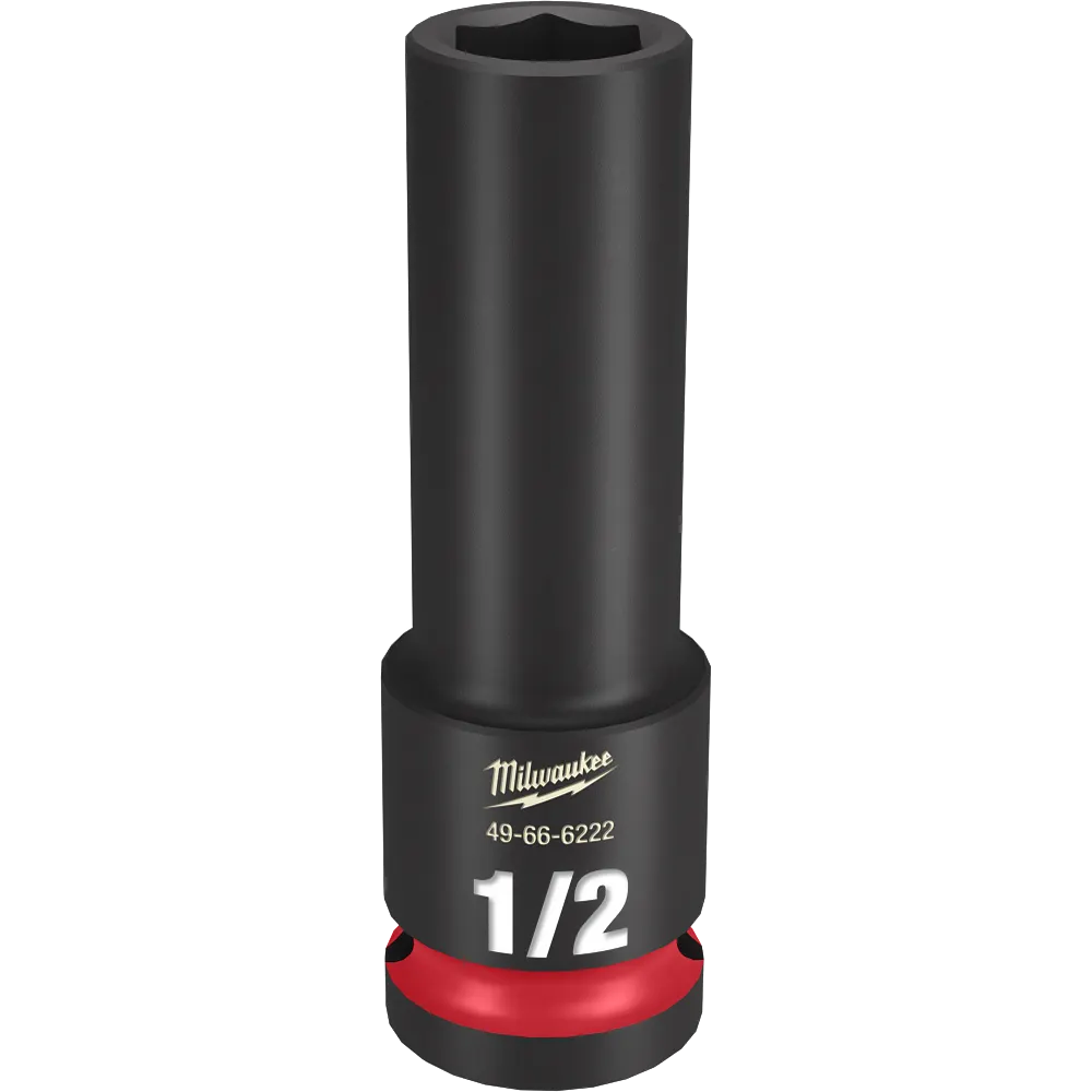The MILWAUKEE® SHOCKWAVE Impact Duty™ 1/2″ Drive 1/2″ Deep 6-Point Socket features the boldest, longest-lasting markings and extreme impact durability in high torque applications. The stamped and ink-filled size marking enables an accurate socket selection every time throughout the life of the socket. Engineered with high-strength forged steel for optimized performance in heavy-duty applications, and a non-slip hex geometry prevents fastener rounding. The dual-hole design and ring groove allow for easy socket attachment and removal. All SHOCKWAVE Impact Duty™ Sockets are backed by a Lifetime Guarantee and meet ASME industry standards.